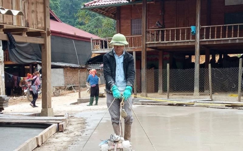 Nhân dân bản Hột, xã Mường Đun, huyện Tủa Chùa, tỉnh Điện Biên góp sức làm đường nội bản. Ảnh: BÍCH HẠNH