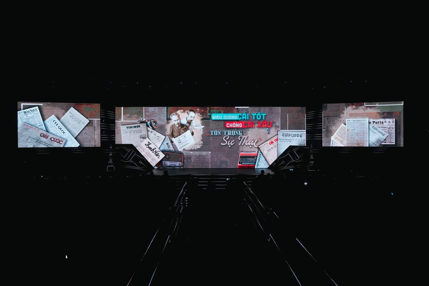 Để tìm “lời giải” cho bài toán khó, ê-kip tổ chức đã đặt trọng tâm vào phần kịch bản với một ý tưởng nhất quán. Cụ thể, ở phần mở màn, hình ảnh Chủ tịch Hồ Chí Minh xuất hiện với quan điểm về nền báo chí cách mạng Việt Nam: “Báo chí là lực lượng xung kích trên mặt trận tư tưởng, văn hóa”, “Nhiệm vụ của báo chí là phục vụ nhân dân, phục vụ cách mạng”. Đây cũng là sợi chỉ đỏ định hướng cho những người làm báo nước ta qua rất nhiều thế hệ.