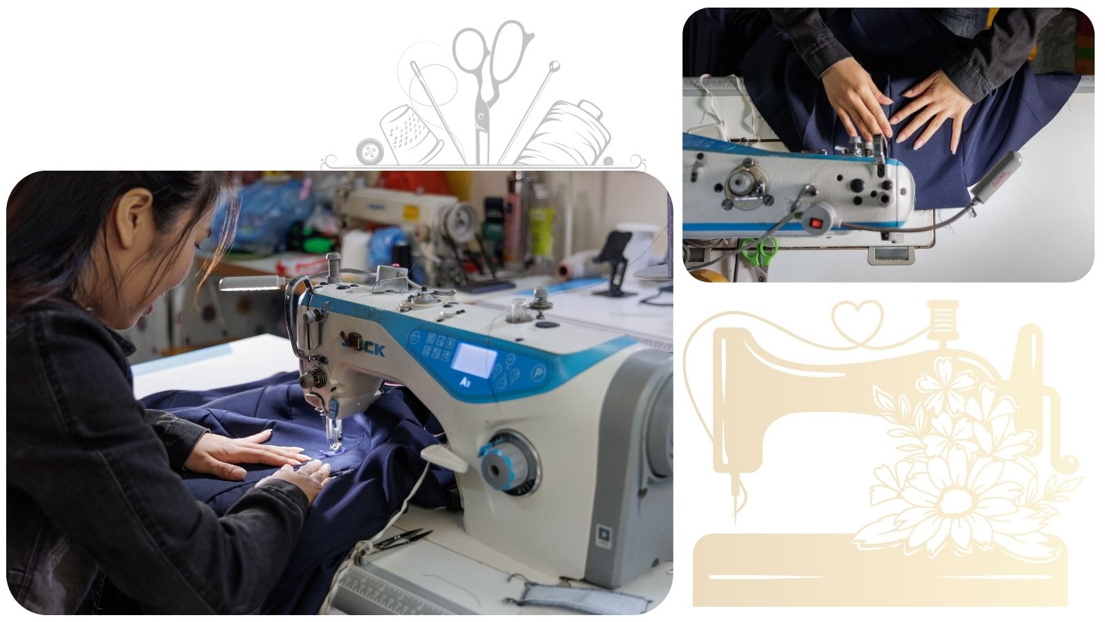 Căn phòng trọ trong một con hẻm nhỏ vừa là nơi gia đình chị sinh sống, vừa là góc làm việc của chị. Ở đó, đôi tay chị luôn miệt mài bên từng đường chỉ, cố gắng hoàn thiện nhiều sản phẩm nhất để kiếm tiền trang trải cuộc sống. Tiếng máy may lạch cạch trở thành âm thanh quen thuộc của cả căn phòng, đôi khi lấn át cả tiếng cười đùa của các con chị trong góc nhà.