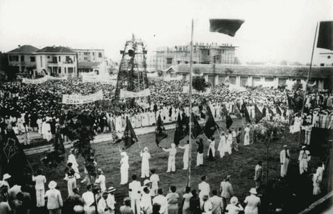Le mouvement du Front démocratique indochinois a organisé un rassemblement pour célébrer la Journée internationale du travail le 1er mai 1938 dans la zone d'exposition de Hanoi (aujourd'hui le Palais culturel de l'amitié) en présence de dizaines de milliers de personnes. Photo : baotanglichsu.vn