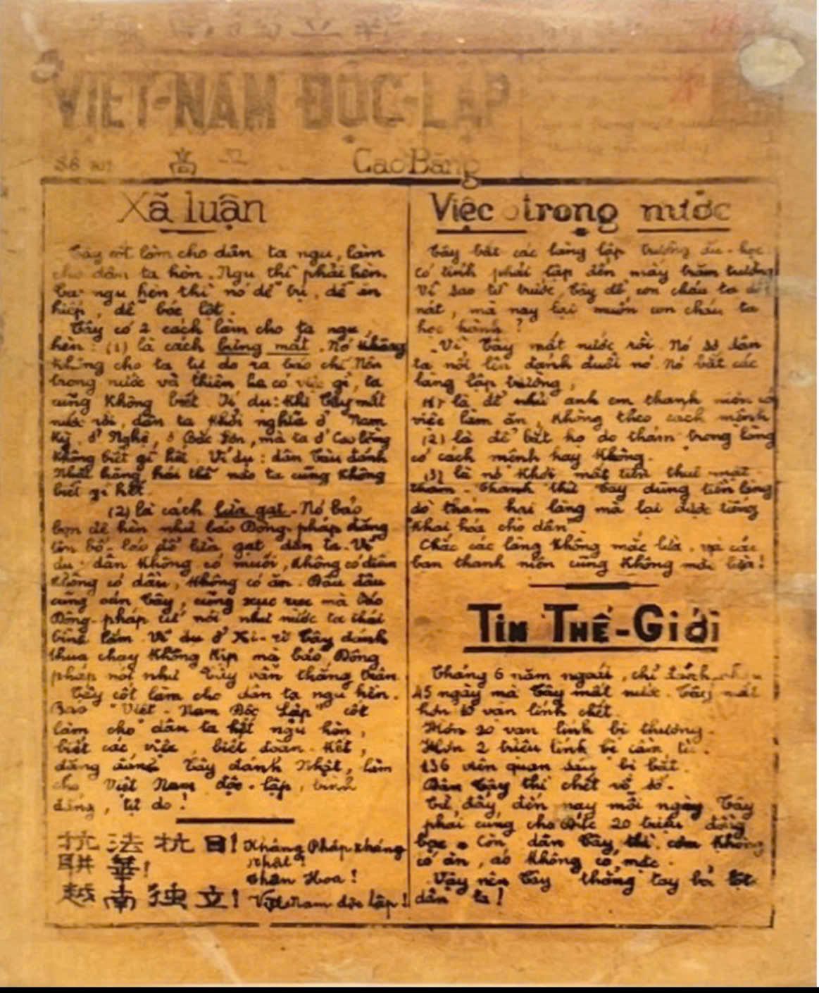 16 năm sau, vẫn là những trang báo viết tay, nhưng Việt Nam Độc lập đã chuyển sang một nấc thang trình bày mới. Một điểm nhấn thị giác quan trọng trên trang nhất của tờ báo chính là hình minh họa cùng các câu thơ, vè, ngạn ngữ dễ nhớ, dễ thuộc với mọi tầng lớp chúng dân.