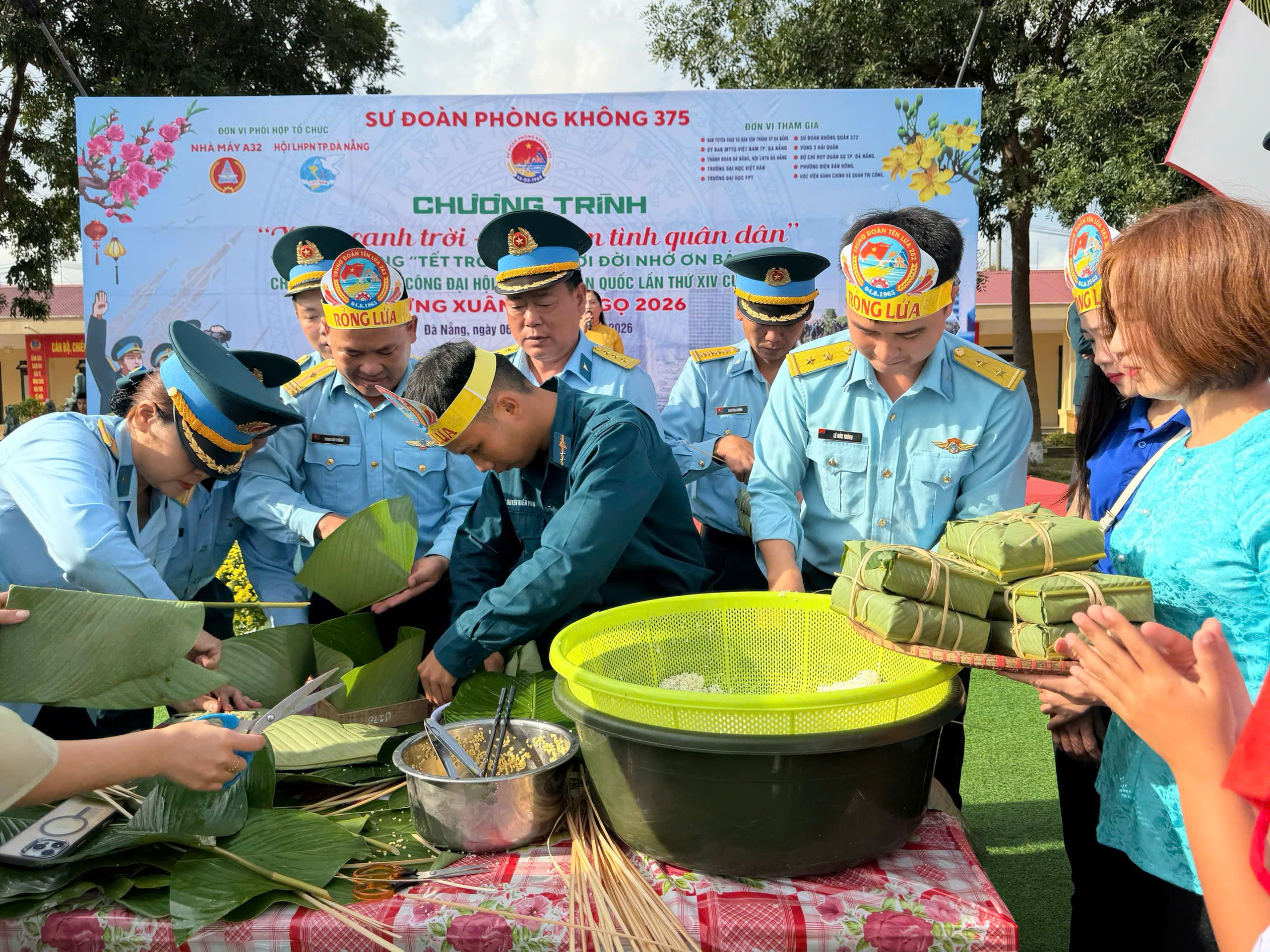 Trong chương trình “Xuân canh trời – Tết ấm tình quân dân”, cán bộ, chiến sĩ Trung đoàn Ra-đa 290, Sư đoàn 375 (Quân chủng Phòng không-Không quân) sôi nổi tham gia thi nấu bánh chưng.