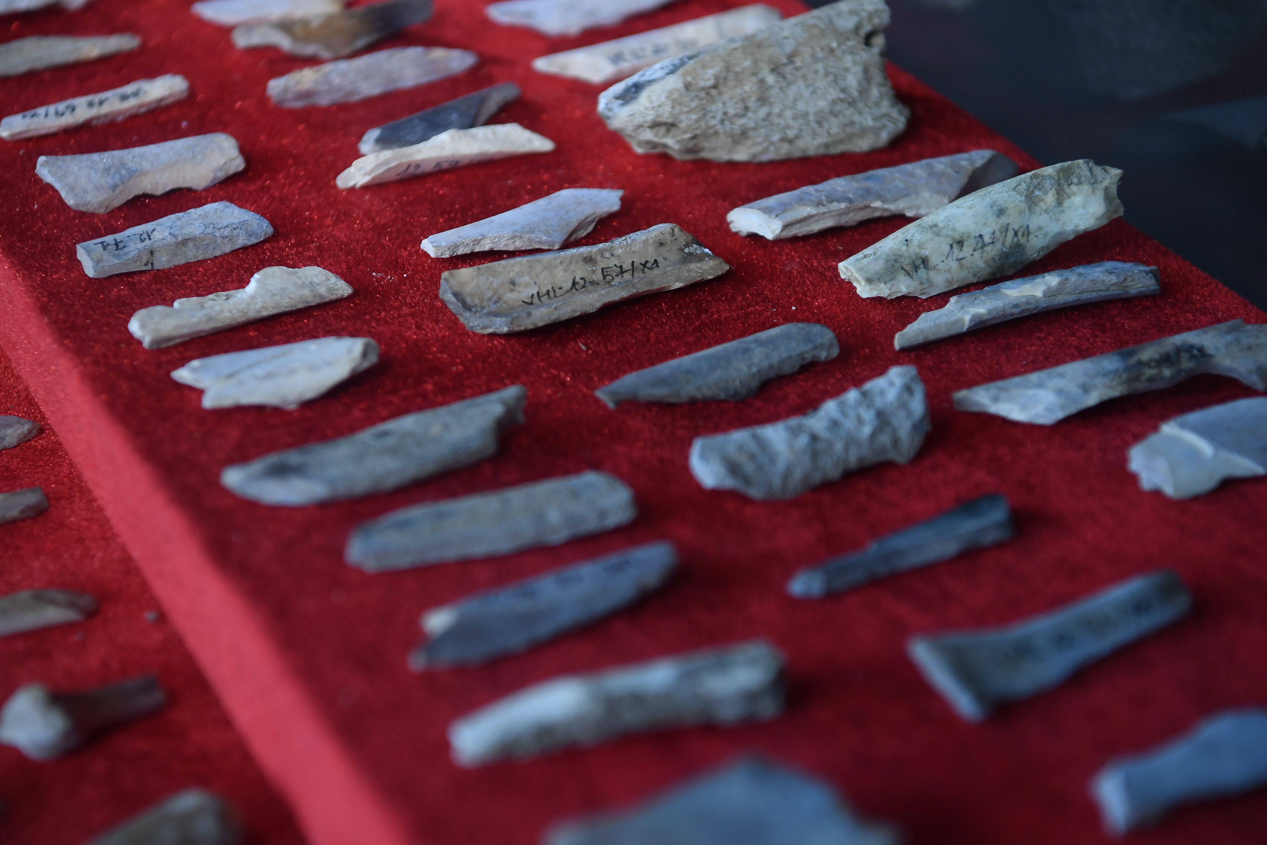 Algunas herramientas de trabajo, resultado de una excavación arqueológica, en exhibición en la cueva de Tien Ong.
