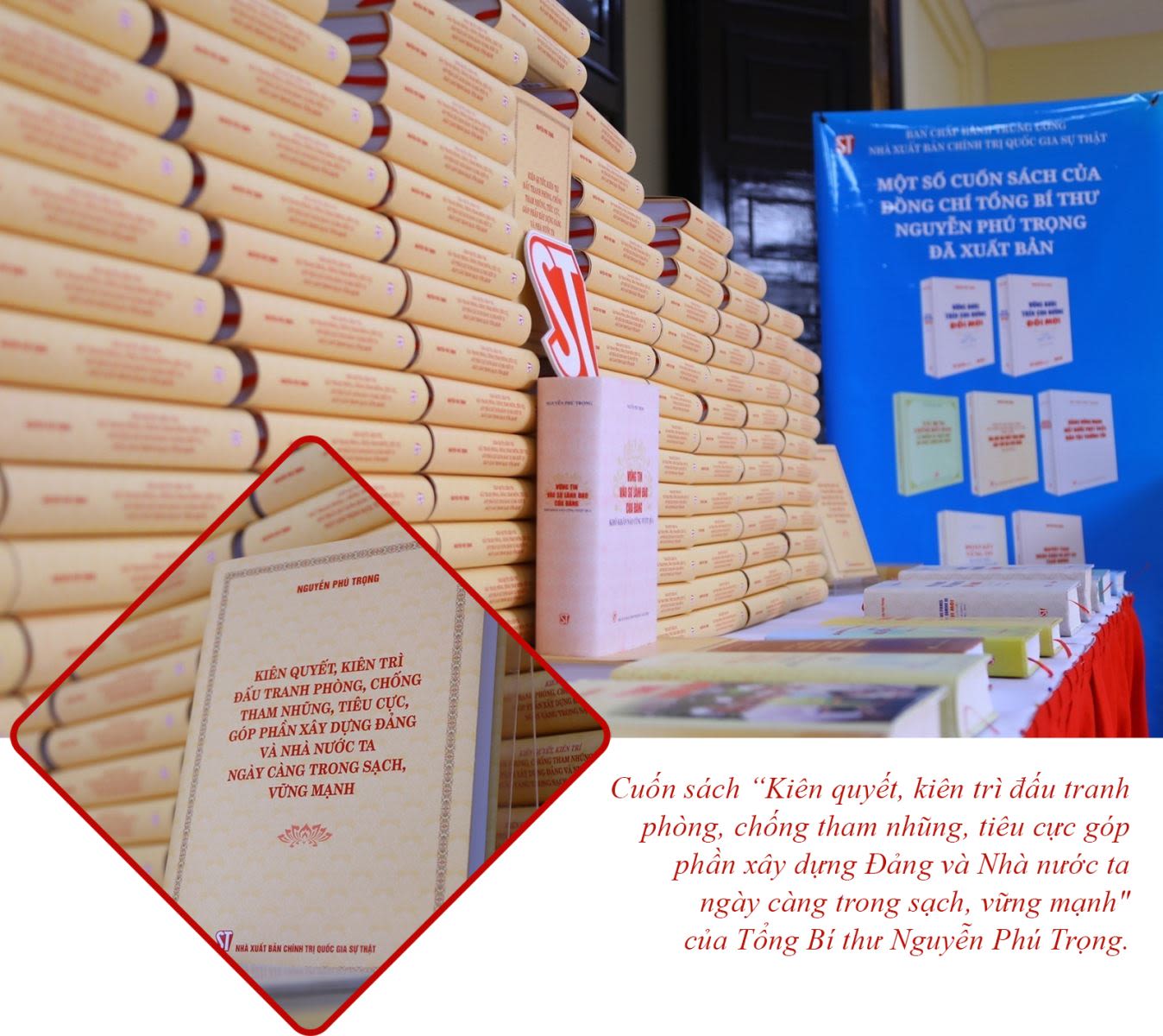Cuốn sách "Kiên quyết, kiên trì đấu tranh phòng, chống tham nhũng, tiêu cực, góp phần xây dựng Ðảng và Nhà nước ta ngày càng trong sạch, vững mạnh" của Tổng Bí thư Nguyễn Phú Trọng được Nhà xuất bản Chính trị quốc gia Sự thật xuất bản nhân dịp 93 năm thành lập Ðảng Cộng sản Việt Nam (3/2/2023). Tác giả cuốn sách đã luận giải và làm sáng rõ thêm bước phát triển mới về quan điểm, nhận thức, tư duy lý luận của Ðảng ta, yêu cầu và tầm quan trọng trong công tác phòng, chống tham nhũng, tiêu cực, cũng như thể hiện sự đồng lòng, ủng hộ và đoàn kết cao của toàn Ðảng, toàn dân.