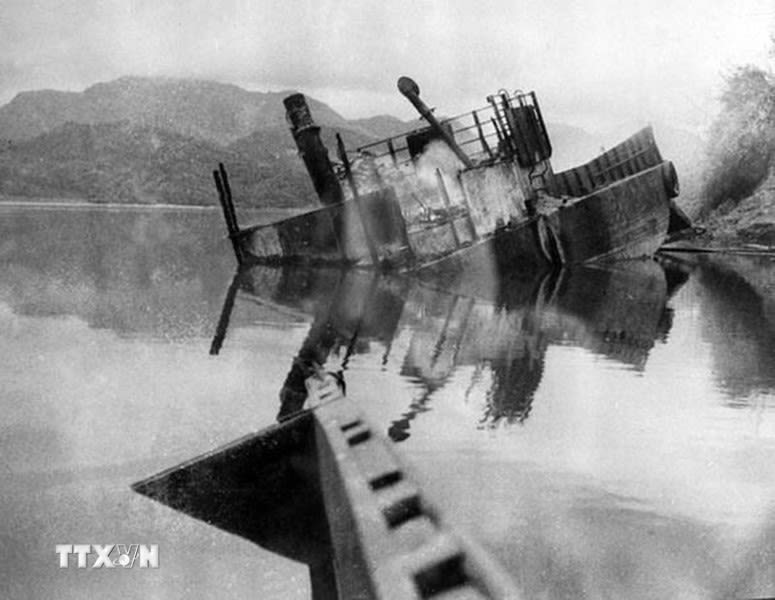 Tàu chiến của thực dân Pháp bị quân ta đánh đắm trên sông Lô trong chiến dịch Việt Bắc-Thu Đông 1947.