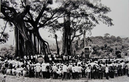 Đại tướng Võ Nguyên Giáp nói chuyện với đồng bào Tuyên Quang dưới gốc đa Tân Trào.