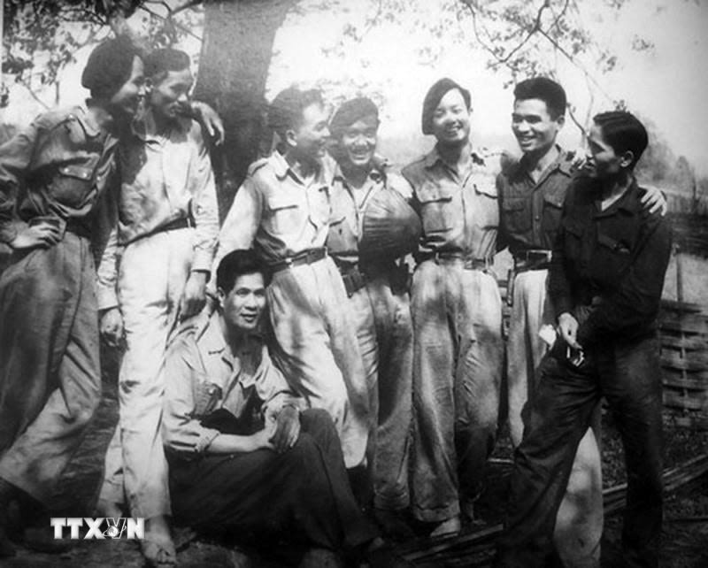 Đại tướng Võ Nguyên Giáp (thứ tư, từ trái sang) cùng đại biểu tại Hội nghị chính trị viên toàn quốc lần thứ hai ở An toàn khu Định Hóa, Thái Nguyên trước Chiến dịch Việt Bắc-Thu Đông 1947.