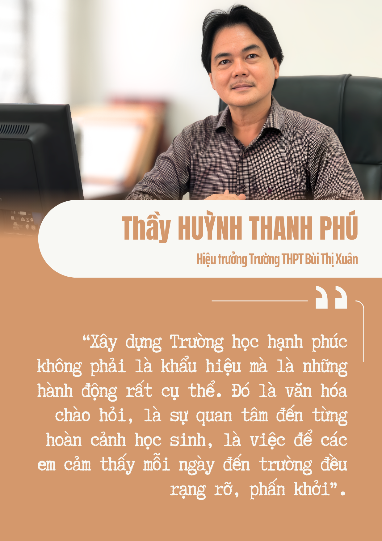 Trường trung học phổ thông (THPT) Bùi Thị Xuân, phường Bến Thành, là một trong những điển hình tiêu biểu trong hành trình xây dựng Trường học hạnh phúc tại Thành phố Hồ Chí Minh. Với bề dày lịch sử gần 70 năm, nhà trường không chọn con đường phô trương hình thức mà bắt đầu từ thực tiễn học đường, từ chính nhu cầu, mong muốn của học sinh.