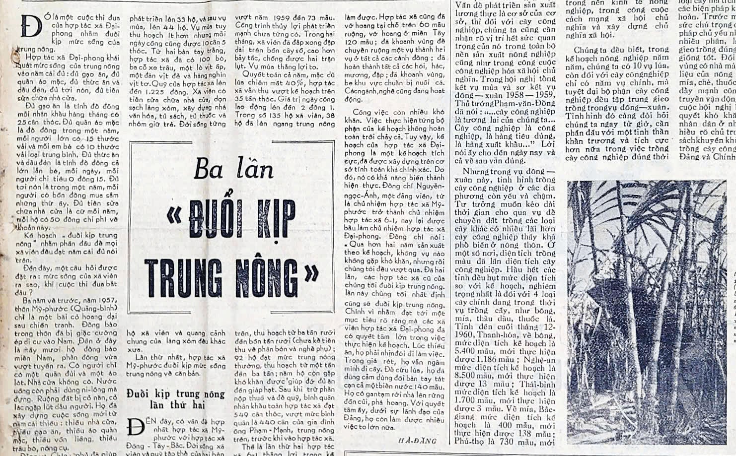 Bài báo "Ba lần đuổi kịp trung nông"của nhà báo Hà Đăng đăng trên Báo Nhân Dân ngày 9/1/1961.