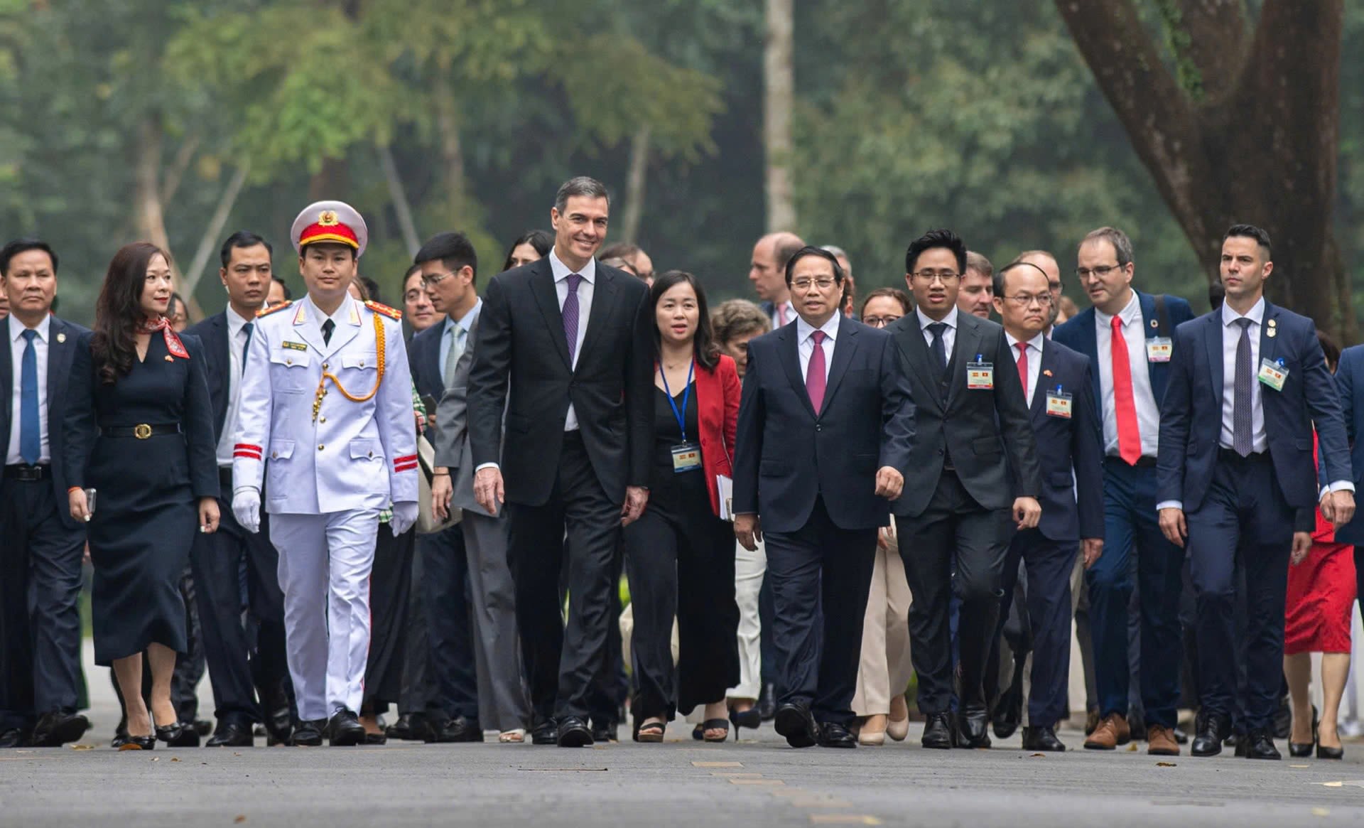 Thủ tướng Phạm Minh Chính chủ trì lễ đón Thủ tướng Tây Ban Nha Pedro Sanchez tháng 4/2025.