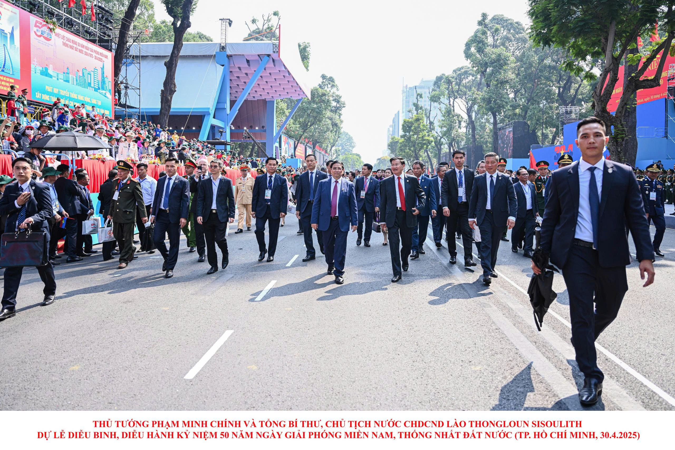 Thủ tướng Phạm Minh Chính và Thủ tướng Lào Thongloun Sisoulith tại lễ kỷ niệm 50 năm ngày Giải phóng miền nam-Thống nhất đất nước.
