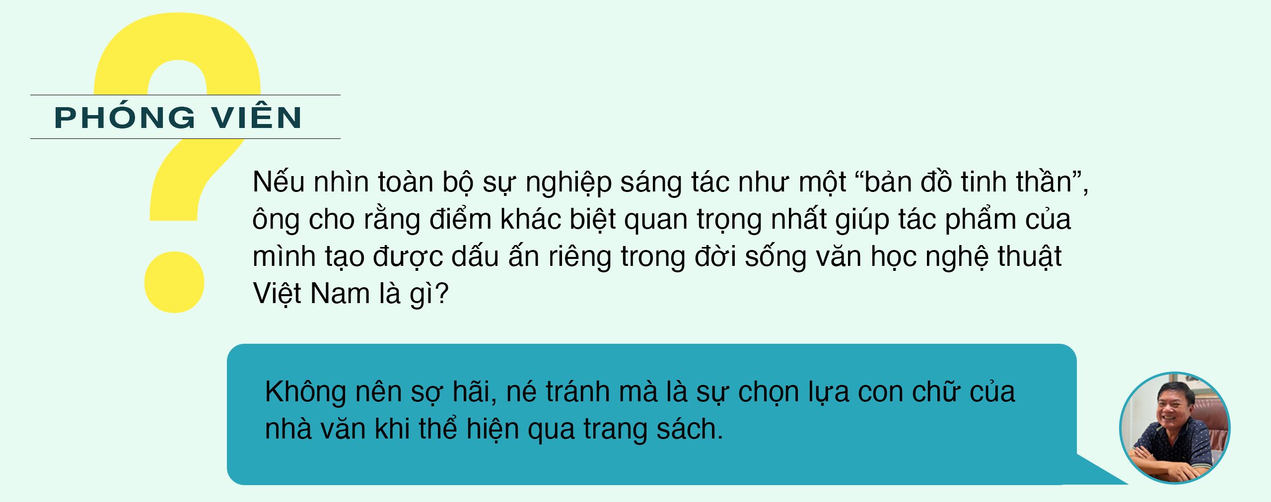 Tôi rất trân trọng và coi trọng tự do trong sáng tác, sự khoáng đạt trong chữ nghĩa. Nhưng tự do không có nghĩa là viết trong trạng thái “không hướng đến đâu cả”. Sáng tác cần xuất phát từ tấm lòng chân thành, nhưng đồng thời phải trả lời được câu hỏi: viết cho ai, hướng tới ai.
