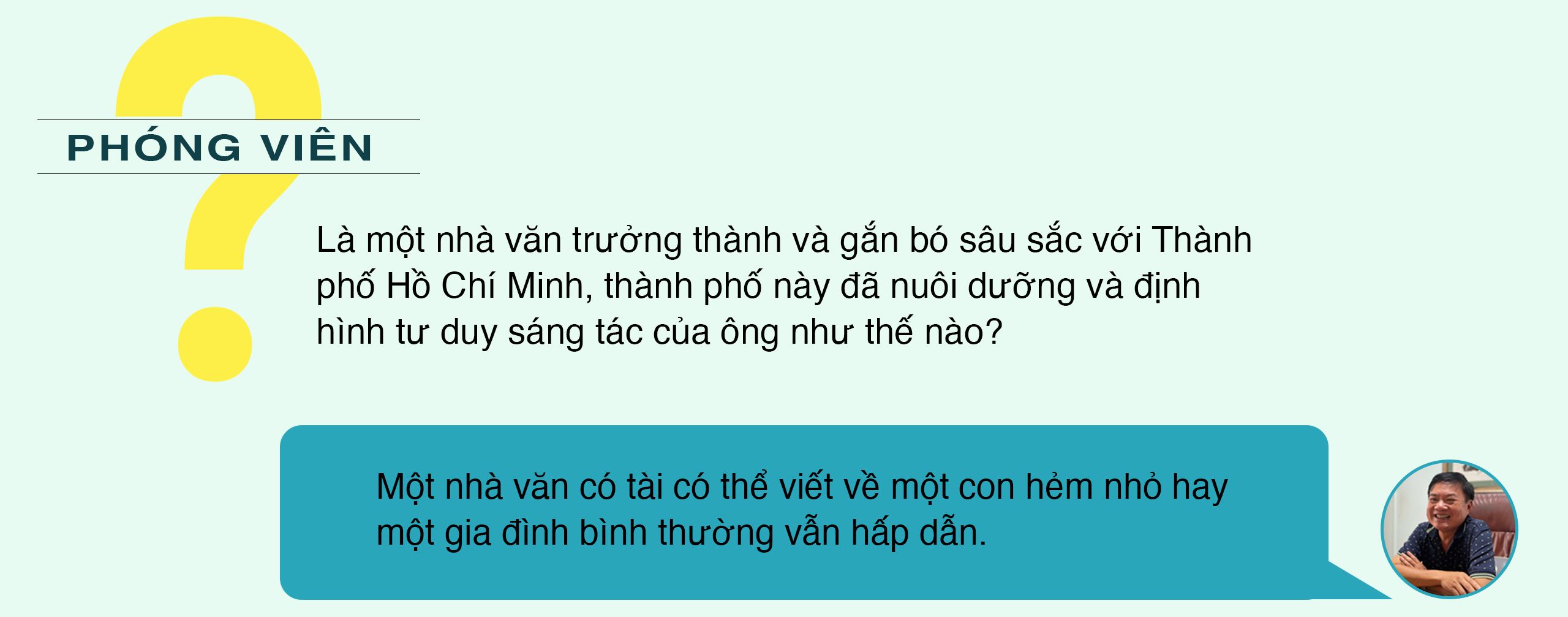 Thành phố Hồ Chí Minh là địa phương đầu tư mạnh nhất cho văn học nghệ thuật. Điều đó cho thấy sự quan tâm thực chất của lãnh đạo thành phố. Nhưng để phát triển bền vững, mỗi văn nghệ sĩ phải ý thức mình là công dân của thành phố, có trách nhiệm với thành phố. Viết văn là dấn thân tự nguyện. Đã chọn thì phải chấp nhận, không than thở.
