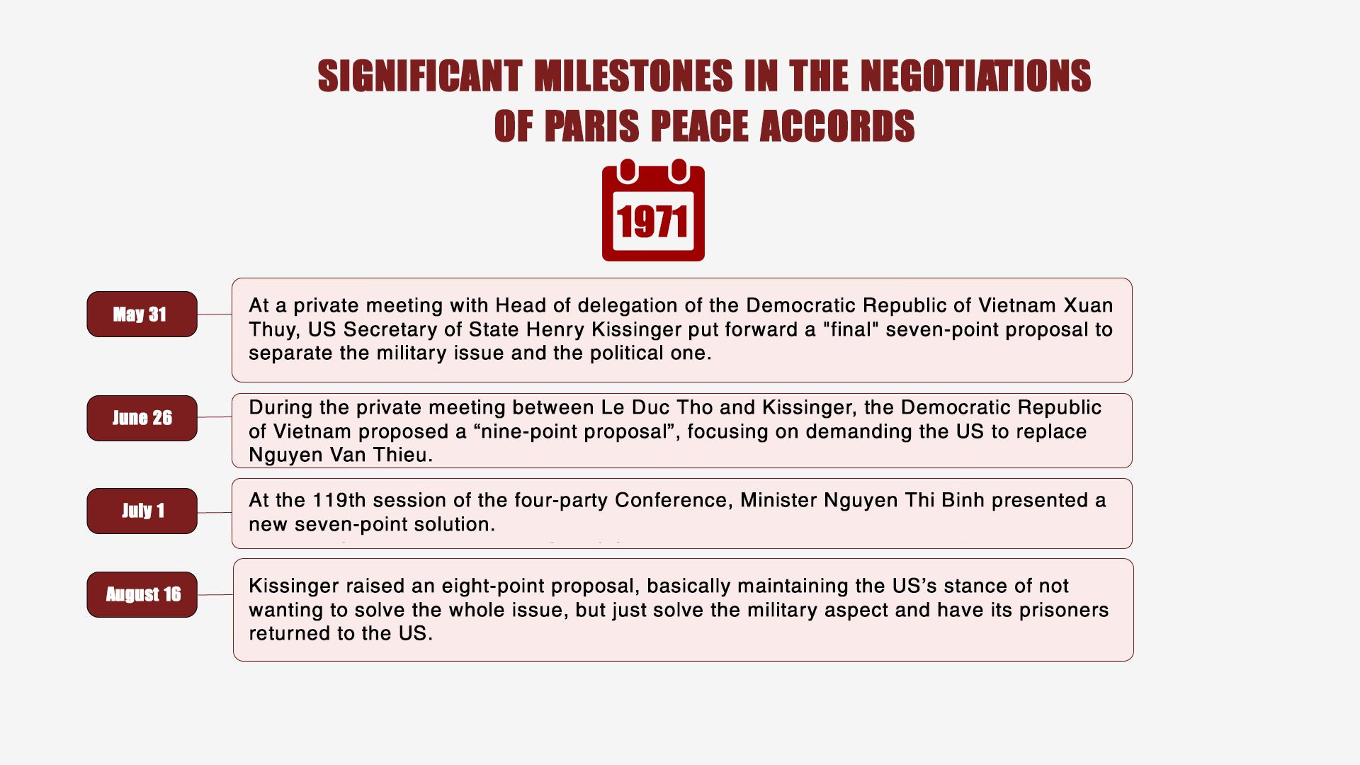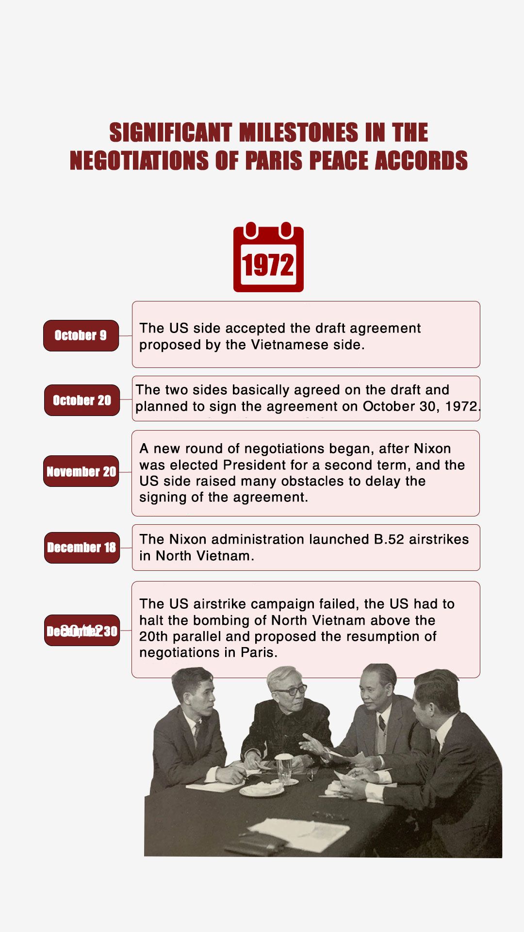 Let's look back at the important milestones in the negotiation process and signing of the Paris Peace Accords.