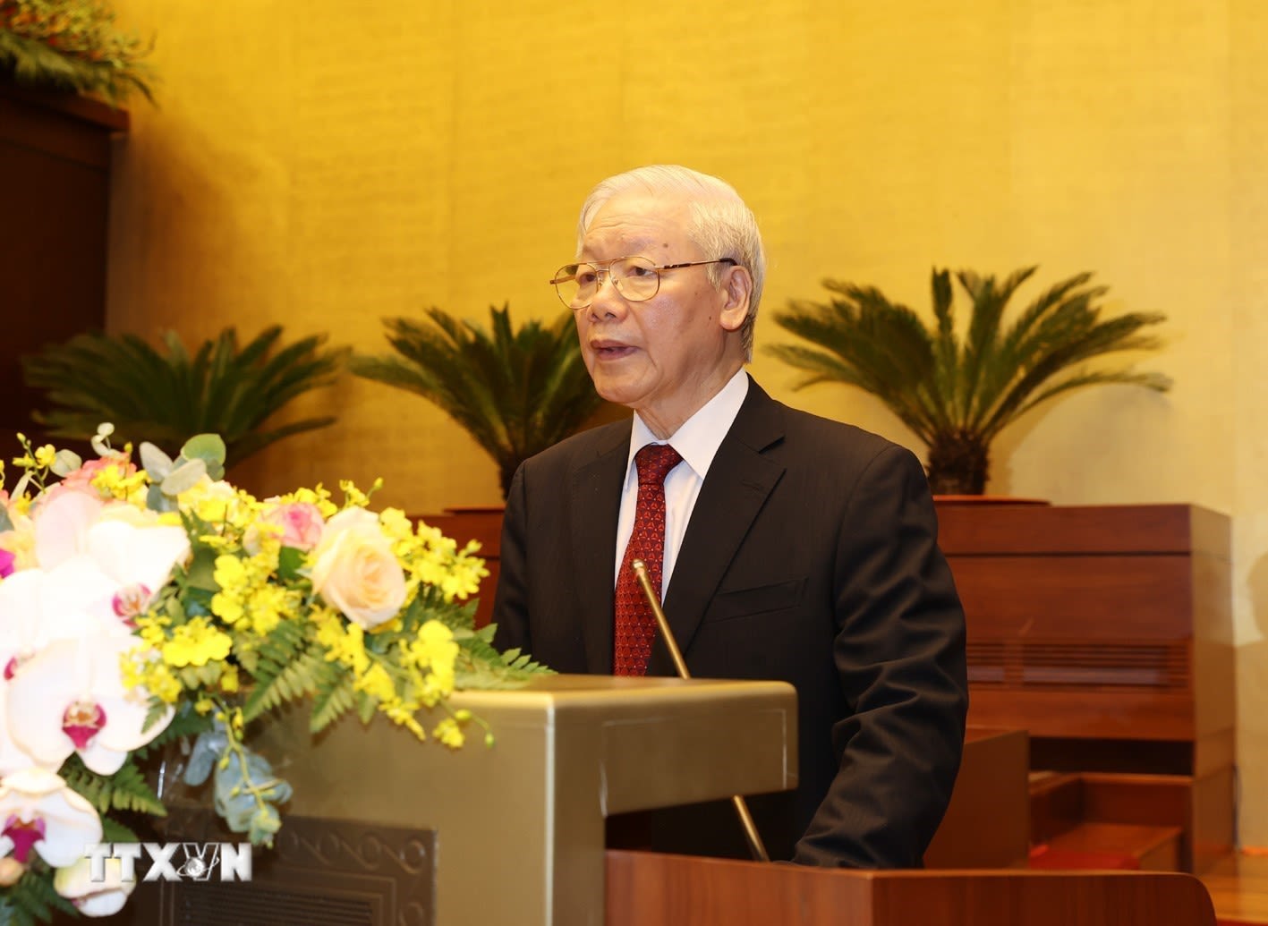 Trong không khí toàn Đảng, toàn dân, toàn quân ta đang thành kính tưởng nhớ và có nhiều hình thức tổ chức kỷ niệm 131 năm Ngày sinh Chủ tịch Hồ Chí Minh vĩ đại, 110 năm ngày Bác ra đi tìm đường cứu nước, 80 năm Ngày Bác về nước, trực tiếp lãnh đạo cách mạng Việt Nam; và trong niềm vui mừng, tin tưởng, tự hào của nhân dân cả nước về thành công rất tốt đẹp của Đại hội đại biểu toàn quốc lần thứ XIII của Đảng; cuộc bầu cử đại biểu Quốc hội khóa XV và Hội đồng nhân dân các cấp nhiệm kỳ 2021-2026, hôm nay chúng ta long trọng tổ chức Hội nghị toàn quốc sơ kết 5 năm thực hiện Chỉ thị số 05 của Bộ Chính trị về "Đẩy mạnh học tập và làm theo tư tưởng, đạo đức, phong cách Hồ Chí Minh". Đây là một việc làm rất cần thiết và có ý nghĩa. Thay mặt Ban Chấp hành Trung ương Đảng, tôi nhiệt liệt chào mừng và gửi tới các đồng chí lãnh đạo Đảng, Nhà nước, các tập thể, cá nhân tiên tiến, điển hình, các vị đại biểu tham dự Hội nghị lời chào thân ái, lời thăm hỏi chân tình và lời chúc tốt đẹp nhất.
