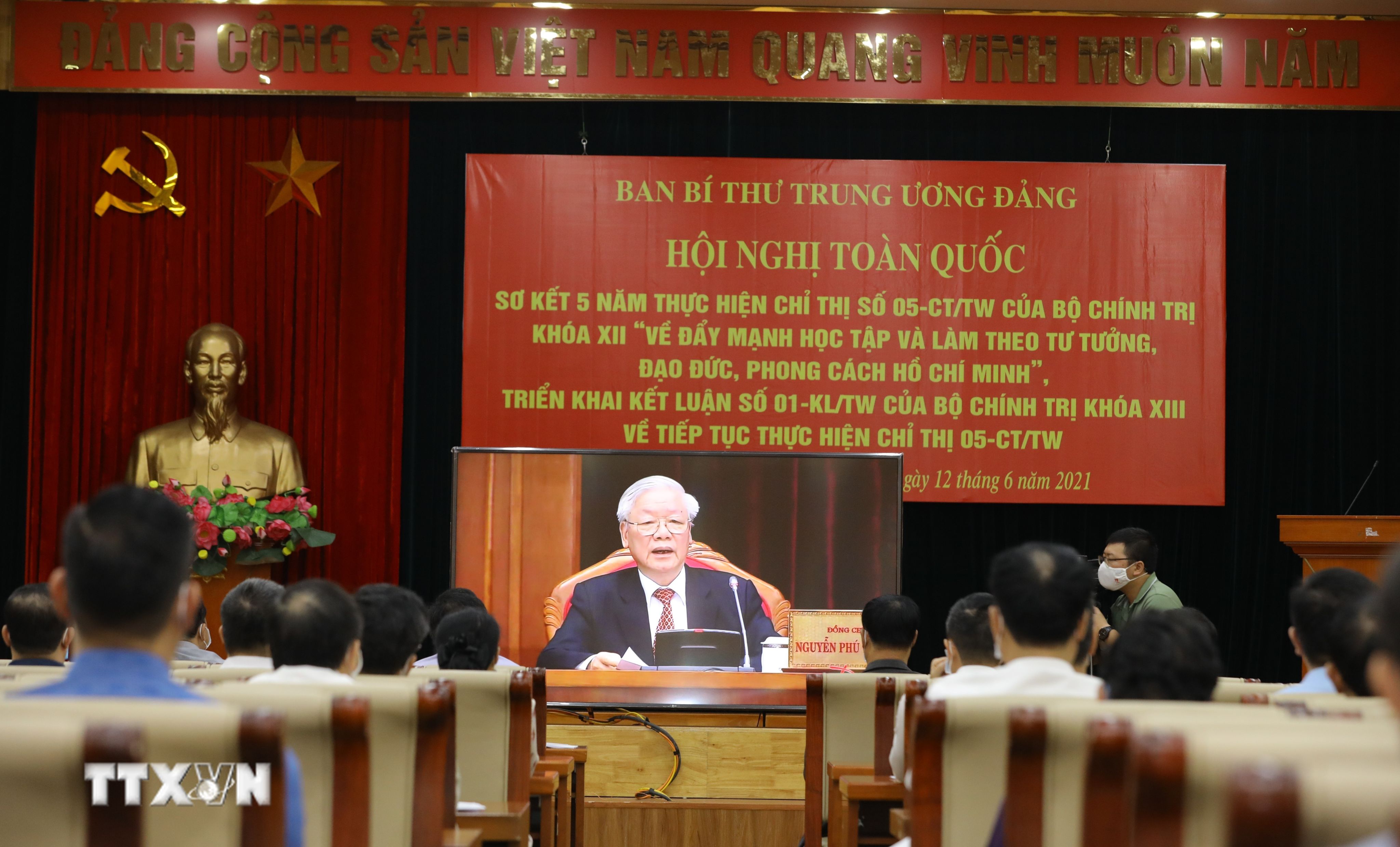 Ngày 12/6/2021, Tổng Bí thư Nguyễn Phú Trọng đã dự và có bài phát biểu quan trọng tại Hội nghị toàn quốc sơ kết 5 năm thực hiện Chỉ thị số 05 của Bộ Chính trị về đẩy mạnh học tập và làm theo tư tưởng, đạo đức, phong cách Hồ Chí Minh. Nhân Dân điện tử trân trọng giới thiệu toàn văn bài phát biểu của đồng chí Nguyễn Phú Trọng.