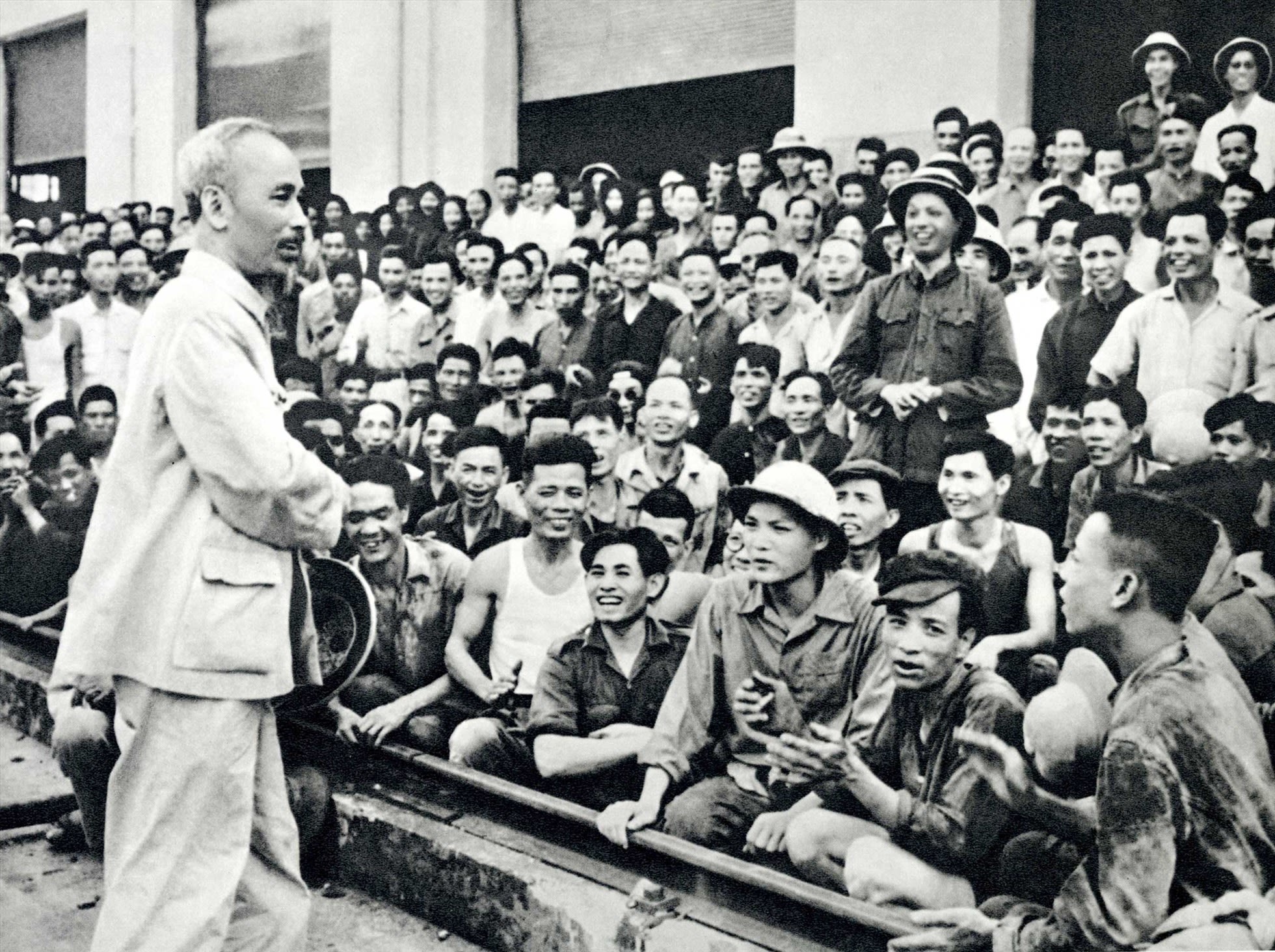 Chủ tịch Hồ Chí Minh nói chuyện thân mật với các đại biểu trí thức dự Hội nghị chính trị đặc biệt (tháng 3/1964). Ảnh: TTXVN