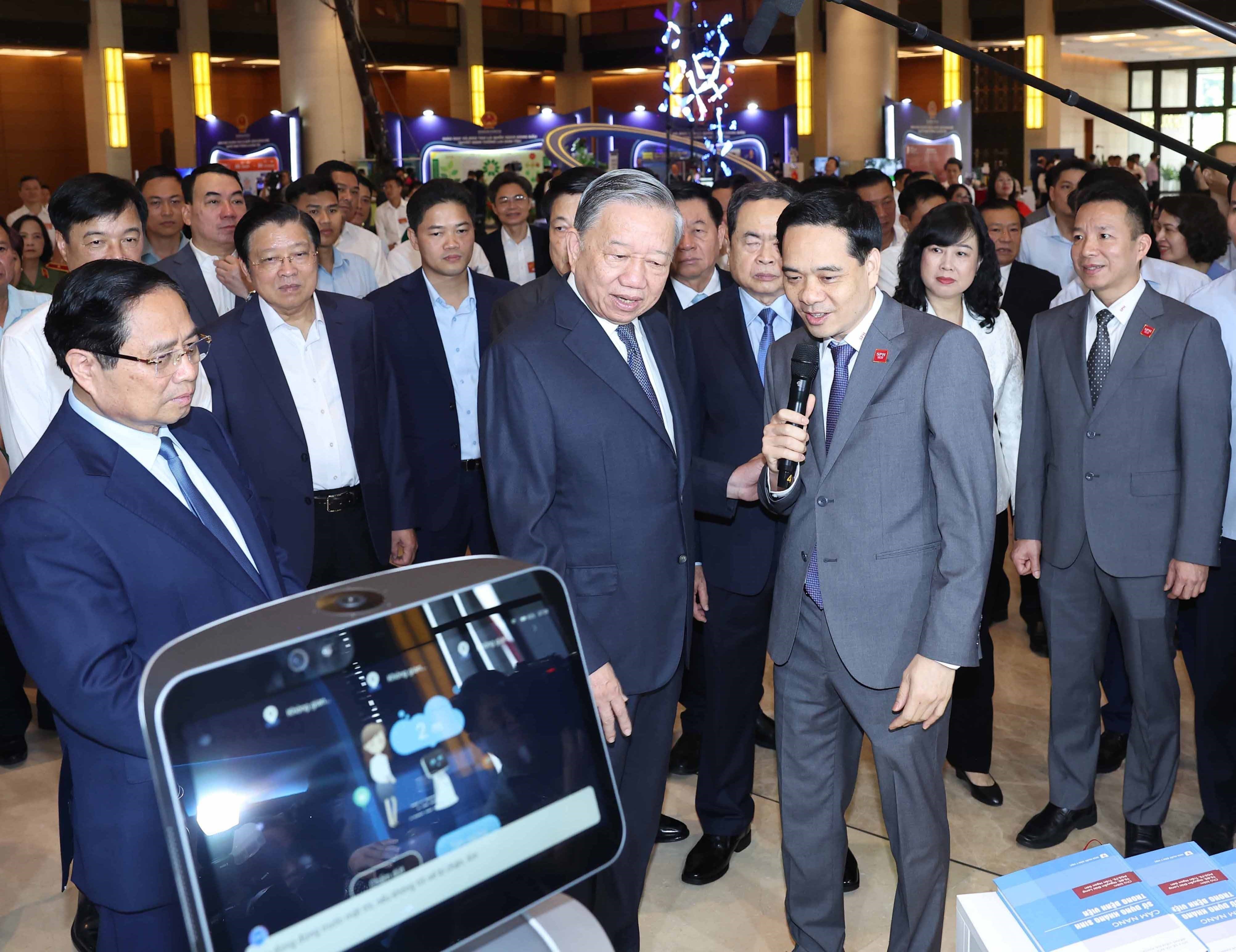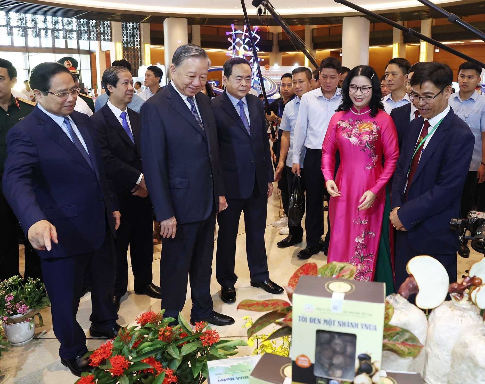 Tổng Bí thư Tô Lâm cùng các đồng chí lãnh đạo Đảng, Nhà nước và các đại biểu dự hội nghị. (Ảnh: DUY LINH)