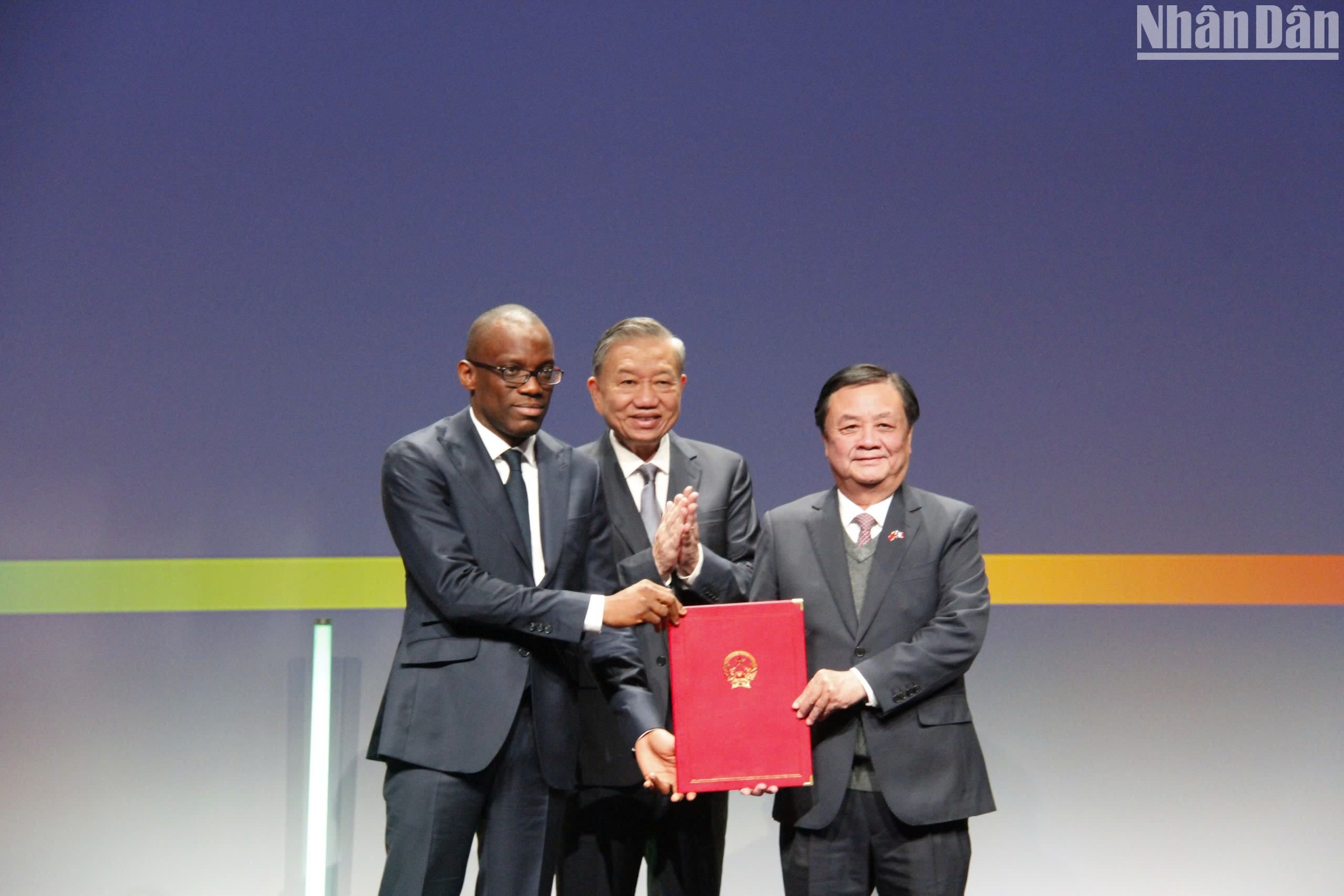 Tổng Bí thư, Chủ tịch nước Tô Lâm chứng kiến chứng kiến trao thỏa thuận hợp tác giữa Bộ Nông nghiệp và Phát triển Nông thôn Việt Nam và Bộ Ngoại giao Cộng hòa Benin.