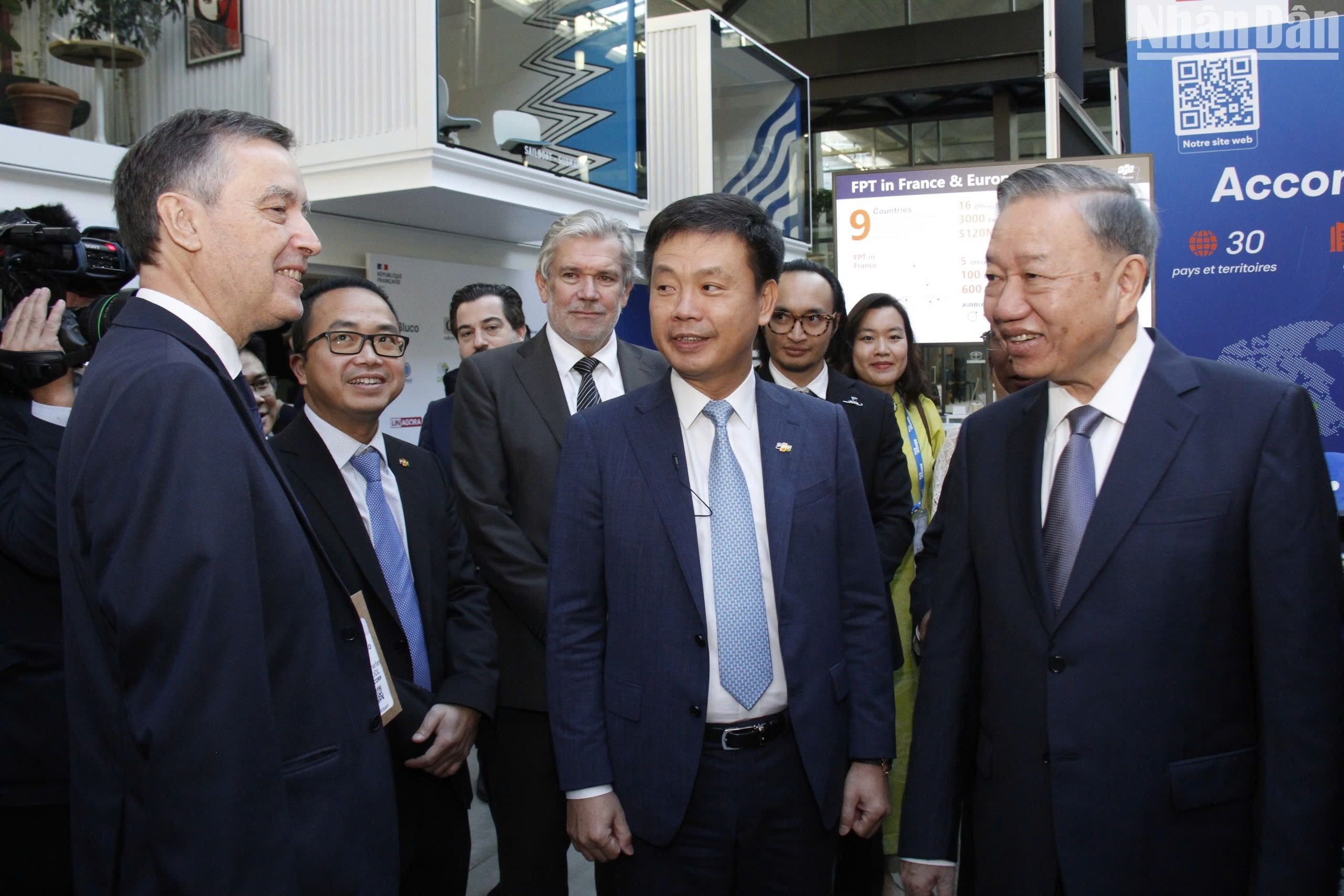 Tổng Bí thư, Chủ tịch nước Tô Lâm thăm gian hàng của Tập đoàn FPT tại Diễn đàn.