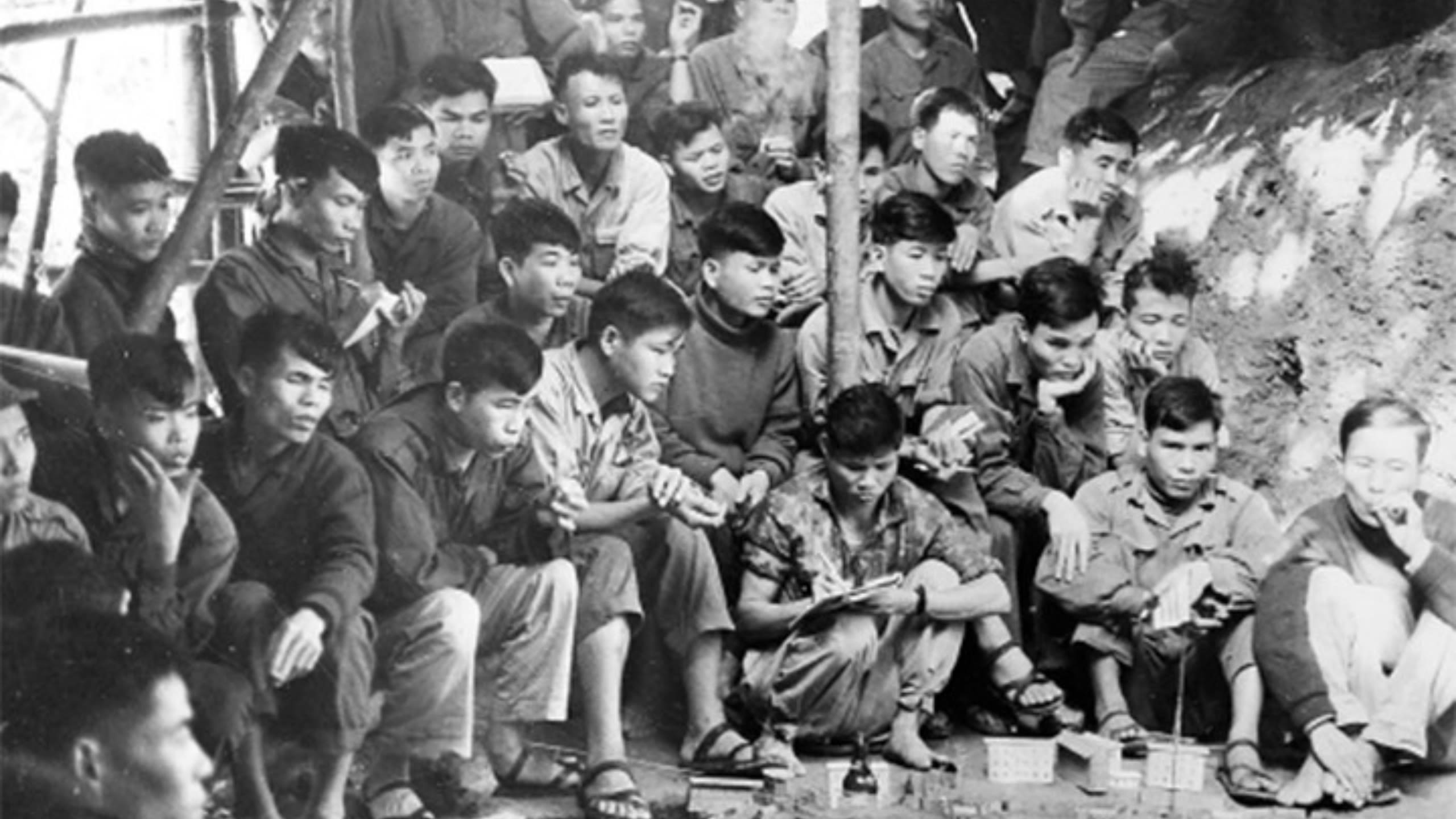 Chiến sĩ quân Giải phóng mặt trận Trị Thiên-Huế nghiên cứu sa bàn, trước trận đánh Tiểu đoàn 7 thiết giáp Ngụy ở Tam Thai, Huế, ngày 31/1/1968. (Ảnh: TTXVN)