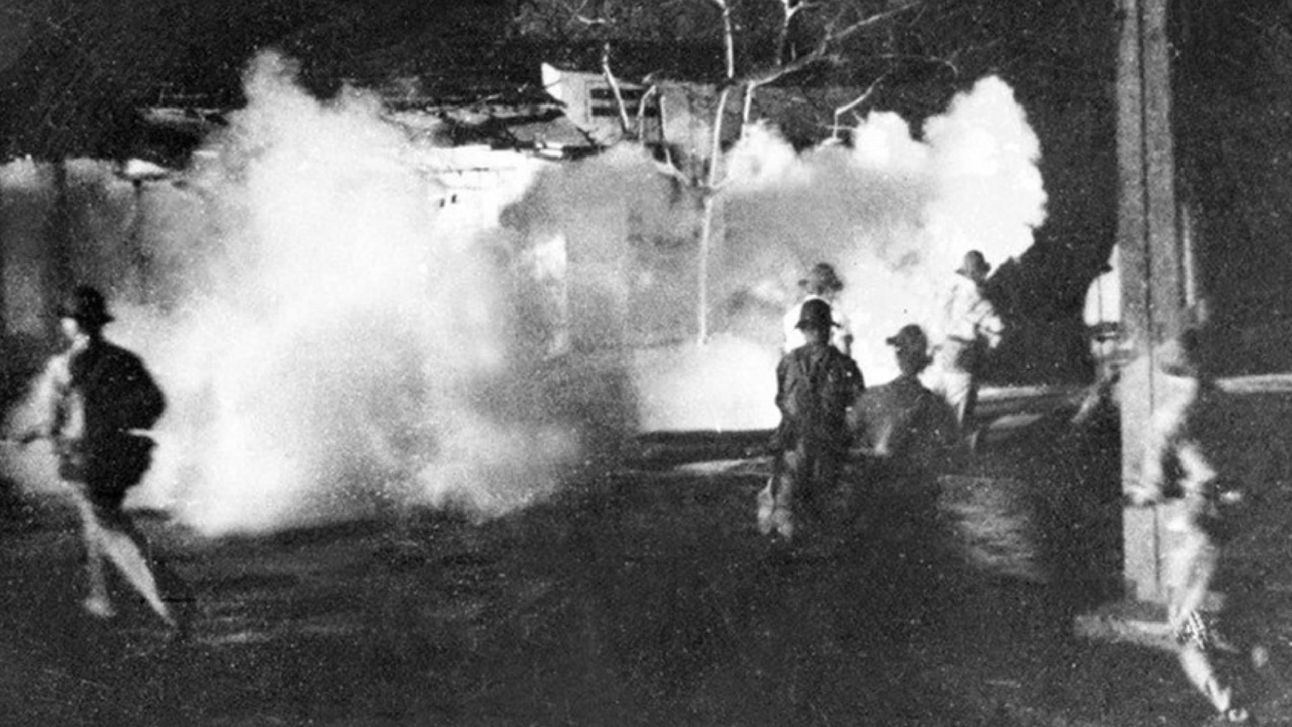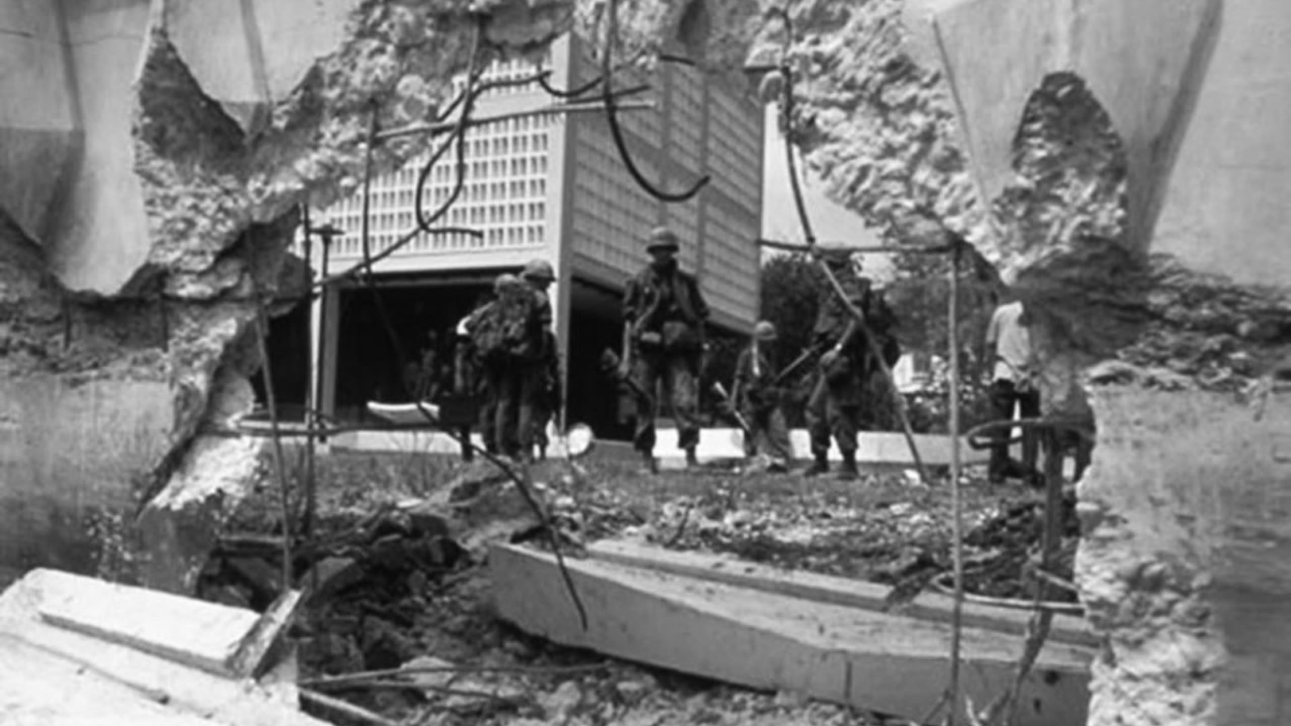Trận tập kích vào tòa Đại sứ Mỹ ở Sài Gòn đêm 30, rạng ngày 31/1/1968 đã gây chấn động dư luận Mỹ và thế giới. Ngày 1/2/1968, hình ảnh Tòa đại sứ Mỹ bị tấn công được đăng trên trang nhất tờ New York Times đã làm bàng hoàng cả nước Mỹ. Từ sau Chiến tranh Thế giới thứ hai, chưa bao giờ người Mỹ lại được nhìn hình ảnh chiến tranh gần và nóng bỏng đến như vậy. (Ảnh: Tư liệu quốc tế/TTXVN)