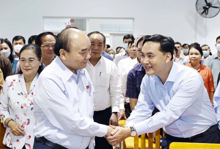Президент Нгуен Суан Фук общается с избирателями уезда Хокмон города Хошимина, 12 октября 2022 года. Фото: ВИА