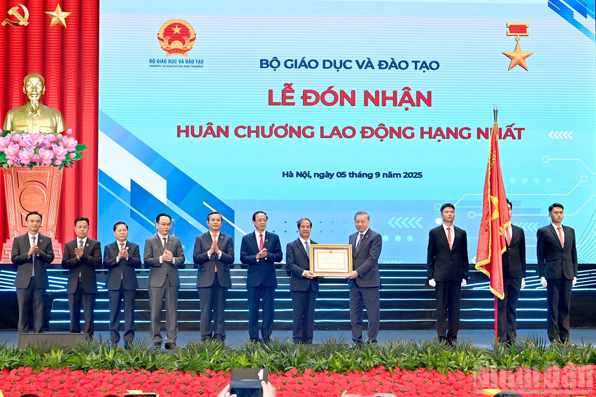 Tổng Bí thư Tô Lâm trao Huân chương Lao động hạng Nhất tặng Bộ Giáo dục và Đào tạo.