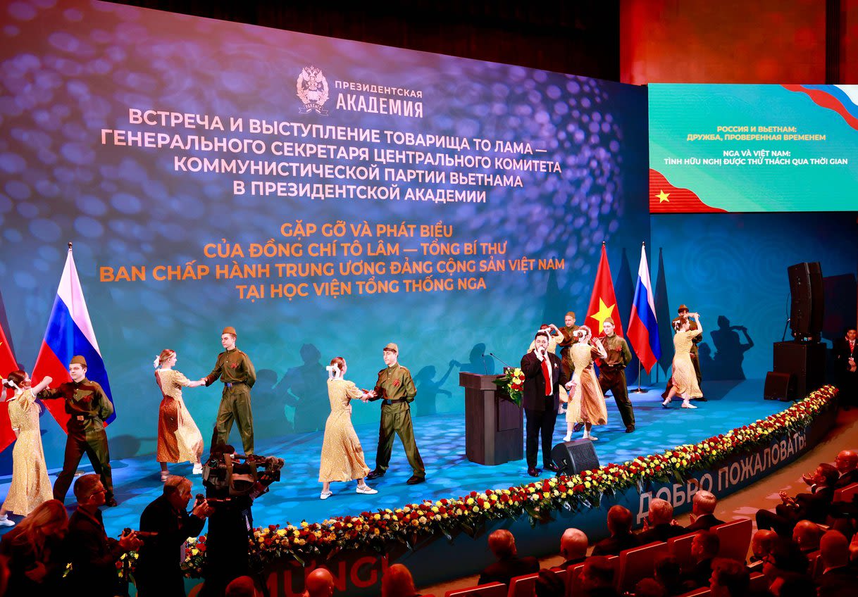 Sáng 10/5 (giờ địa phương), trong khuôn khổ chuyến thăm chính thức Liên bang Nga và dự Lễ kỷ niệm 80 năm Ngày chiến thắng trong Chiến tranh Vệ quốc vĩ đại, Tổng Bí thư Tô Lâm cùng Đoàn đại biểu cấp cao Việt Nam đã có buổi gặp gỡ và phát biểu tại Học viện Hành chính công và kinh tế quốc dân trực thuộc Tổng thống Liên bang Nga (RANEPA). Báo Nhân Dân trân trọng giới thiệu nội dung bài phát biểu.