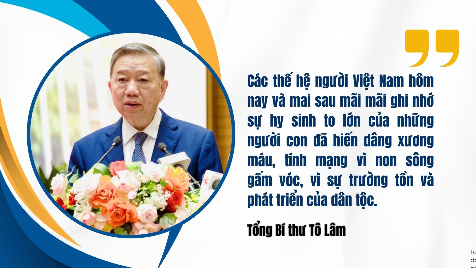 Thế hệ trẻ hôm nay phải sống, học tập, lao động và cống hiến xứng đáng với sự hy sinh của cha anh; xây dựng đất nước hùng cường, phát triển nhanh và bền vững; bảo vệ vững chắc độc lập, chủ quyền quốc gia, giữ gìn hòa bình để những hy sinh, gian khổ mà thế hệ trước đã trải qua phải là nền tảng để thế hệ sau xây dựng và phát triển. Đó chính là món quà lớn nhất mà thế hệ trẻ có thể dâng lên các bác, các cô, chú - những người đã dành cả tuổi xuân cho độc lập, tự do và thống nhất của Tổ quốc.