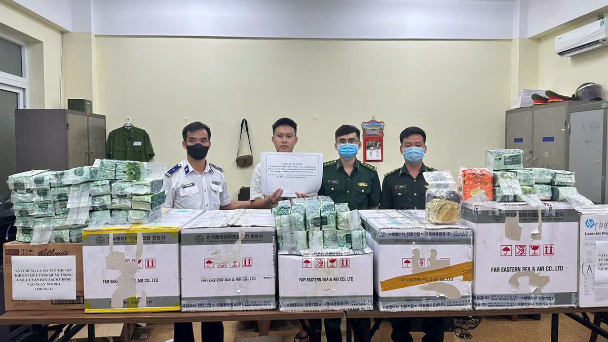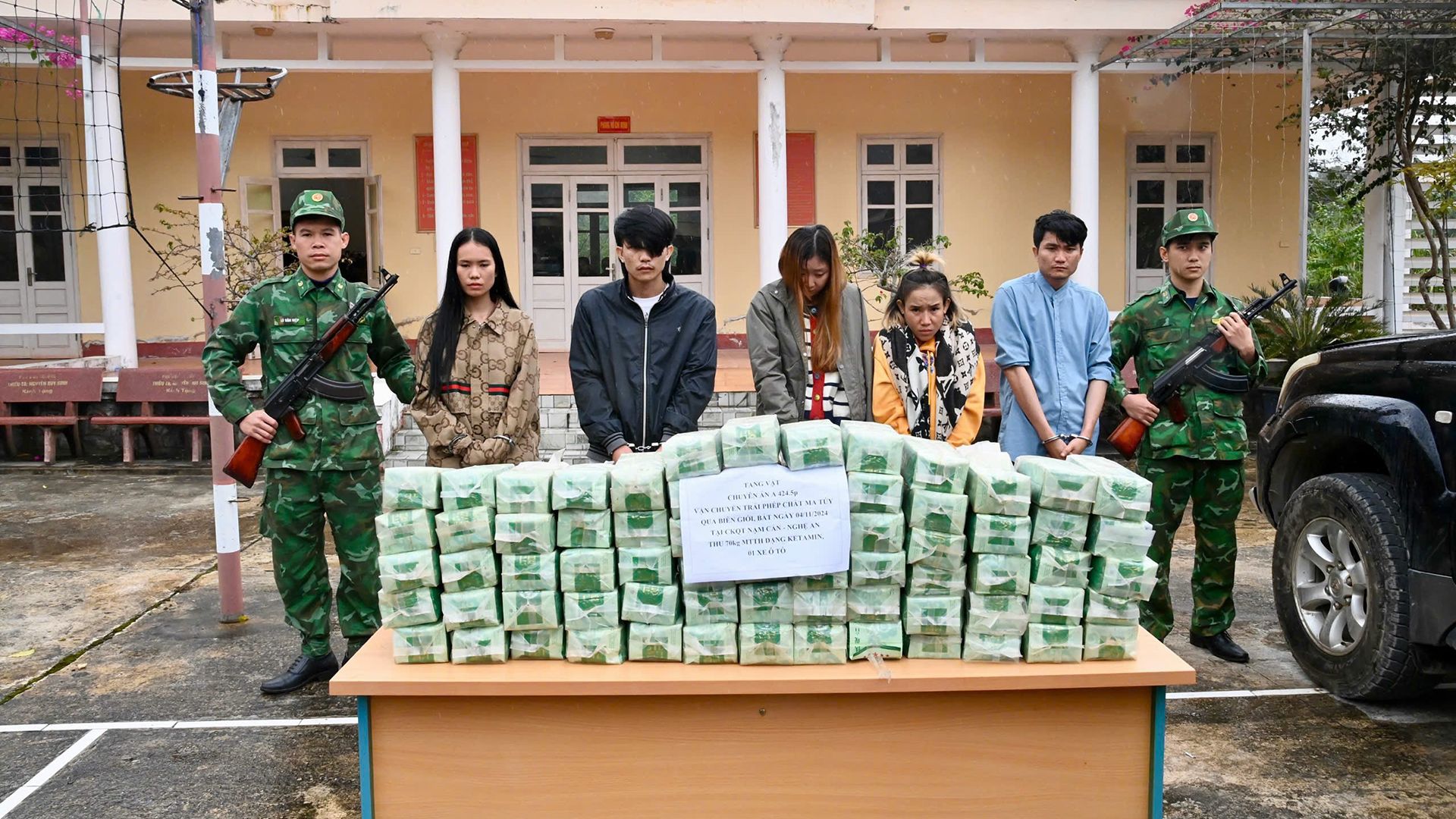 Lực lượng phòng chống ma túy bắt đối tượng vận chuyển trái phép ma túy qua biên giới ngày 4/11/2024 tại cửa khẩu quốc tế Nậm Cắn, Nghệ An, thu 70kg ma túy dạng ketamin.
