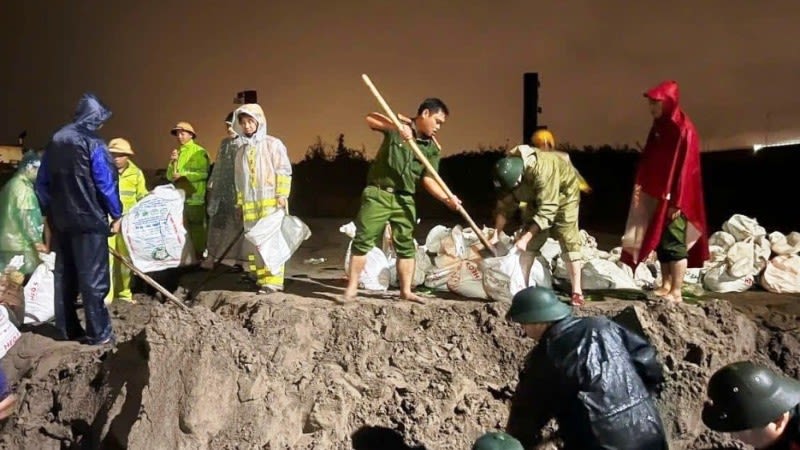 Cán bộ, chiến sĩ lực lượng vũ trang và nhân dân thành phố Nam Định chung sức, đồng lòng phòng chống lũ sau cơn bão số 3 năm 2024.
