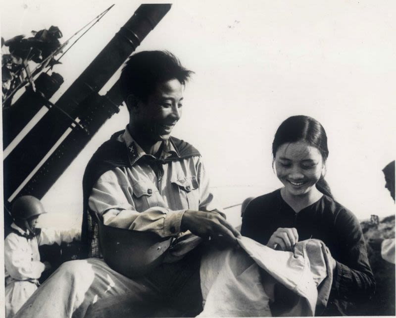 Vá áo cho bộ đội ngay trên trận địa.