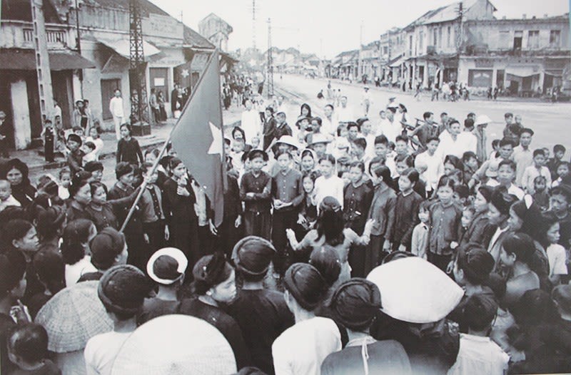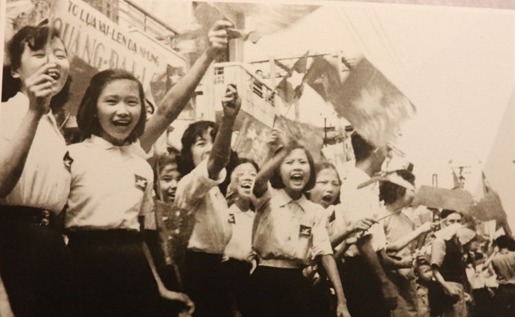 Chị em phụ nữ Hà Nội tưng bừng đón đoàn quân trở về trong ngày Giải phóng Thủ đô 10/10/1954. Ảnh tư liệu