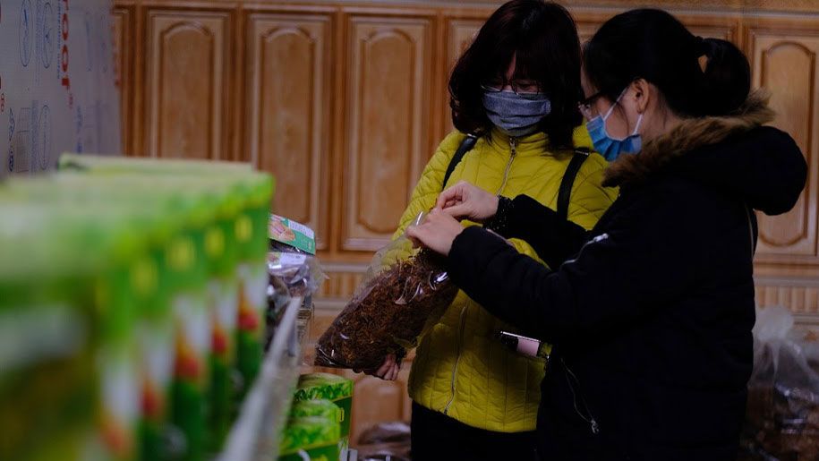 Khách hàng tìm hiểu sản phẩm măng khô.