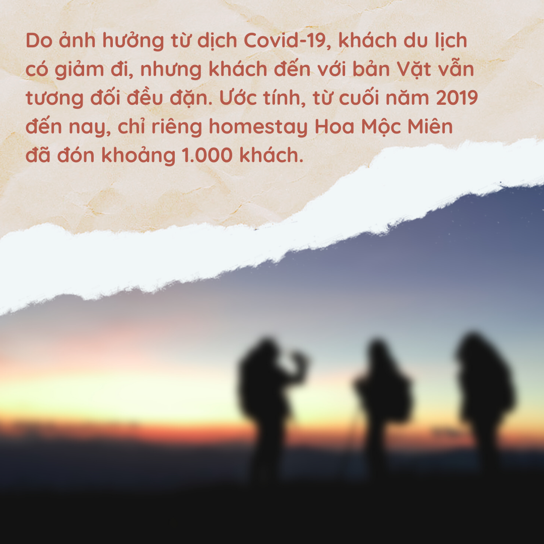 Có nhà sàn, Tươi mở thêm một số dịch vụ phụ trợ đi kèm như bán đồ lưu niệm, đặc sản, nông sản cho du khách, phục vụ ăn uống, cà phê tại chỗ… Đặc biệt, gian hàng nhỏ với những chiếc khăn, áo được may, dệt từ chính những khung cửi của các bà, các chị trong bản Vặt đã trở thành điểm nhấn được du khách rất yêu thích ở đây. Khách lác đác có dần, Tươi cải tạo vườn trồng dâu tây, tạo thêm điểm tham quan, trải nghiệm cho du khách, tăng sức hút đối với điểm du lịch nho nhỏ mới hình thành ở bản mình.