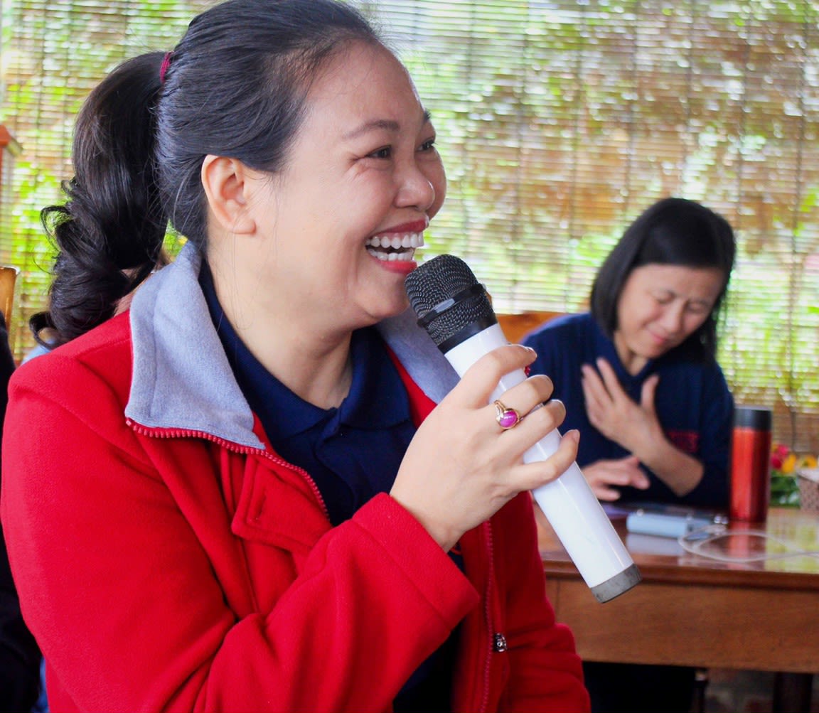 Chị cho biết: “Những người khuyết tật không cần lương cao như những người khỏe mạnh khác, họ chỉ cần ổn định để không bị phụ thuộc vào ai, không phải là gánh nặng cho người thân trong gia đình. Có như vậy họ mới có được tiếng nói, vị thế trong gia đình, xã hội. Chính vì những suy nghĩ đó tôi đã thành lập Nhóm Trái tim hồng, là tiền đề cho Hợp tác xã Thủ công mỹ nghệ Trái tim hồng ngày nay”.