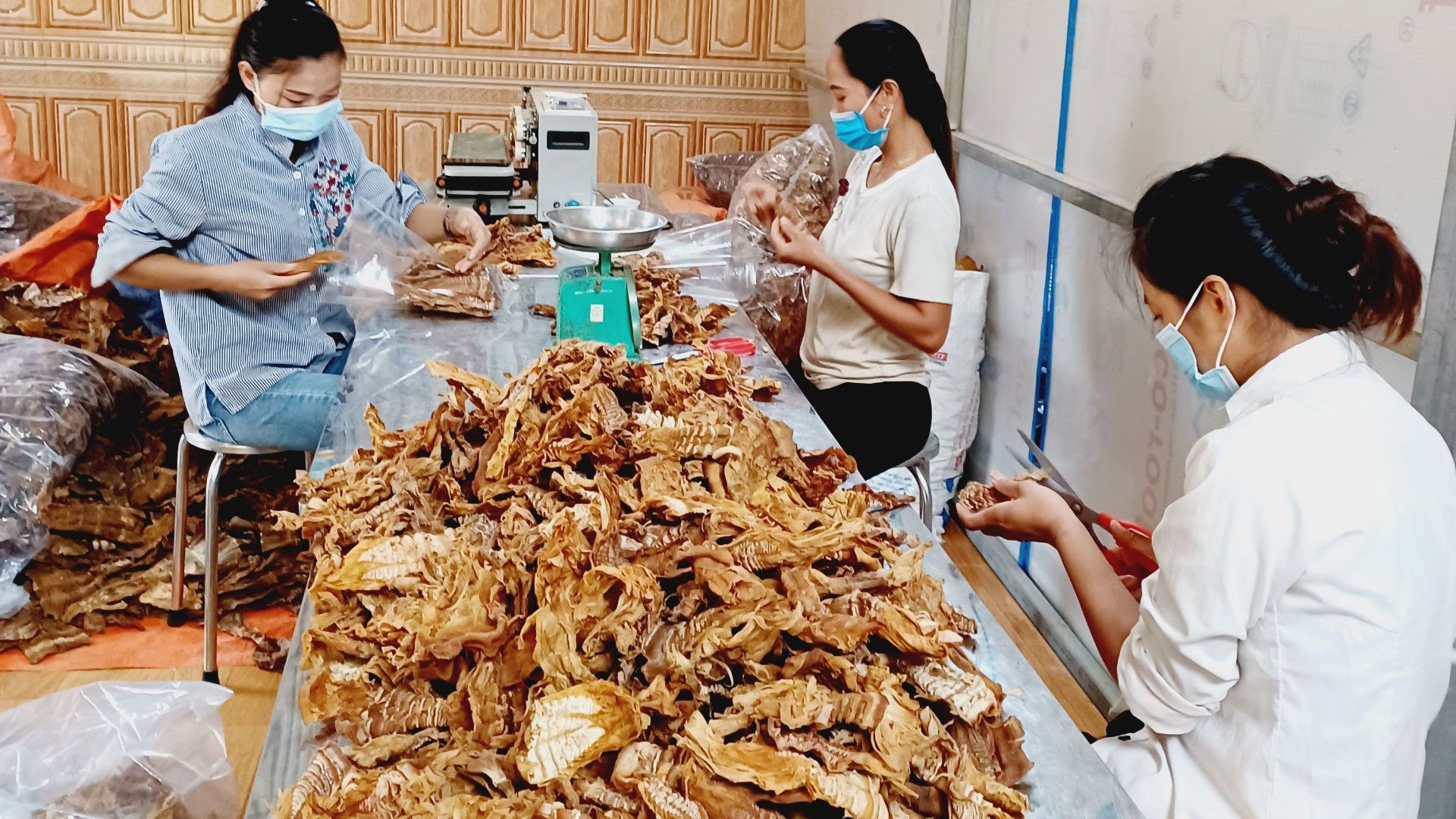 Chị em phụ nữ trong bản Bướt làm việc tại Hợp tác xã.