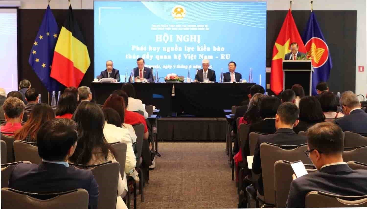 Conférence sur la mobilisation des ressources de la diaspora pour renforcer les relations Vietnam-UE. Photo : VNA.