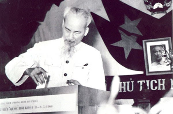 Chủ tịch Hồ Chí Minh bỏ phiếu bầu đại biểu Quốc hội (Ảnh tư liệu)