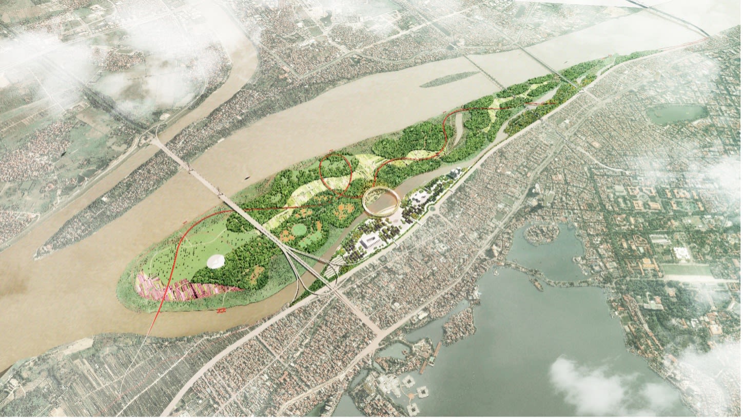 Về giải pháp quy hoạch, kiến trúc, cảnh quan Dự án Quy hoạch công viên văn hóa nghệ thuật sông Hồng đề xuất 3 không gian chính: