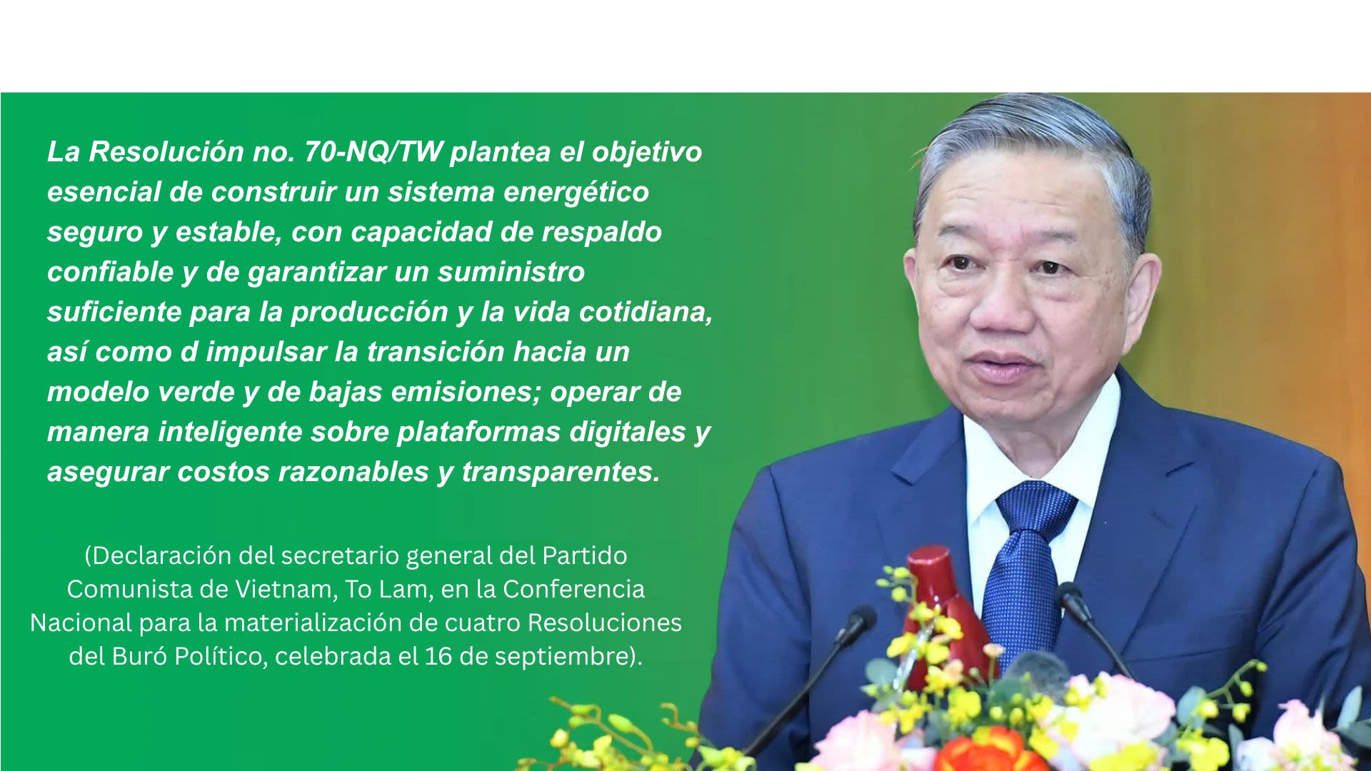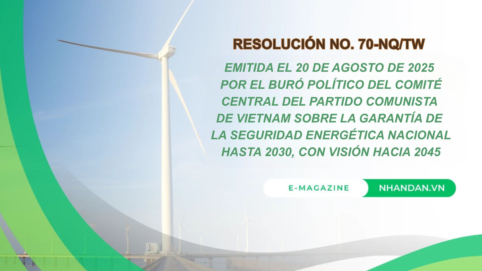 La Resolución no. 70-NQ/TW, emitida por el Buró Político el 20 de agosto de 2025, constituye un documento estratégico, que refleja la visión a largo plazo y el pensamiento proactivo del Partido en la garantía de la seguridad energética nacional en el nuevo contexto. Hereda y desarrolla las orientaciones establecidas en la Resolución no. 55-NQ/TW (2020) sobre la estrategia de desarrollo energético nacional, al tiempo que incorpora nuevos contenidos acordes con la situación socioeconómica, las exigencias de crecimiento, la integración global y los compromisos internacionales.