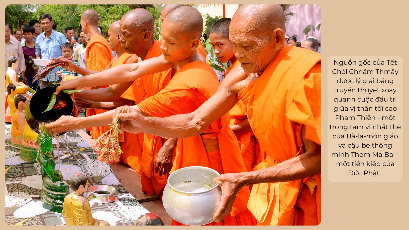 Ngày tết thứ ba 6/3 âm lịch (nhằm ngày 16/4 dương lịch) gọi là “Lơn-sắk” là ngày có rất nhiều ý nghĩa quan trọng đối với đồng bào Kh’mer, buổi sáng mọi người đến chùa dâng huê ẩm thực đến chư tăng, chư tăng cùng mọi người tắm các tượng Phật, giữa trưa cùng ngày, Acha, Ban quản trị đại diện đồng bào Phật tử Kh’mer cung thỉnh chư tăng làm lễ cầu siêu (người Kh’mer gọi là Băng-Sa-Kôl) để hồi hướng phước đến vong linh những người đã mất có quan hệ quyết thống với mình, nhất là những người có công tạo lập, các vị sư sãi quá cố đã hy sinh vì Đạo pháp dân tộc, các anh hùng liệt sĩ đã hy sinh vì Quốc gia dân tộc.