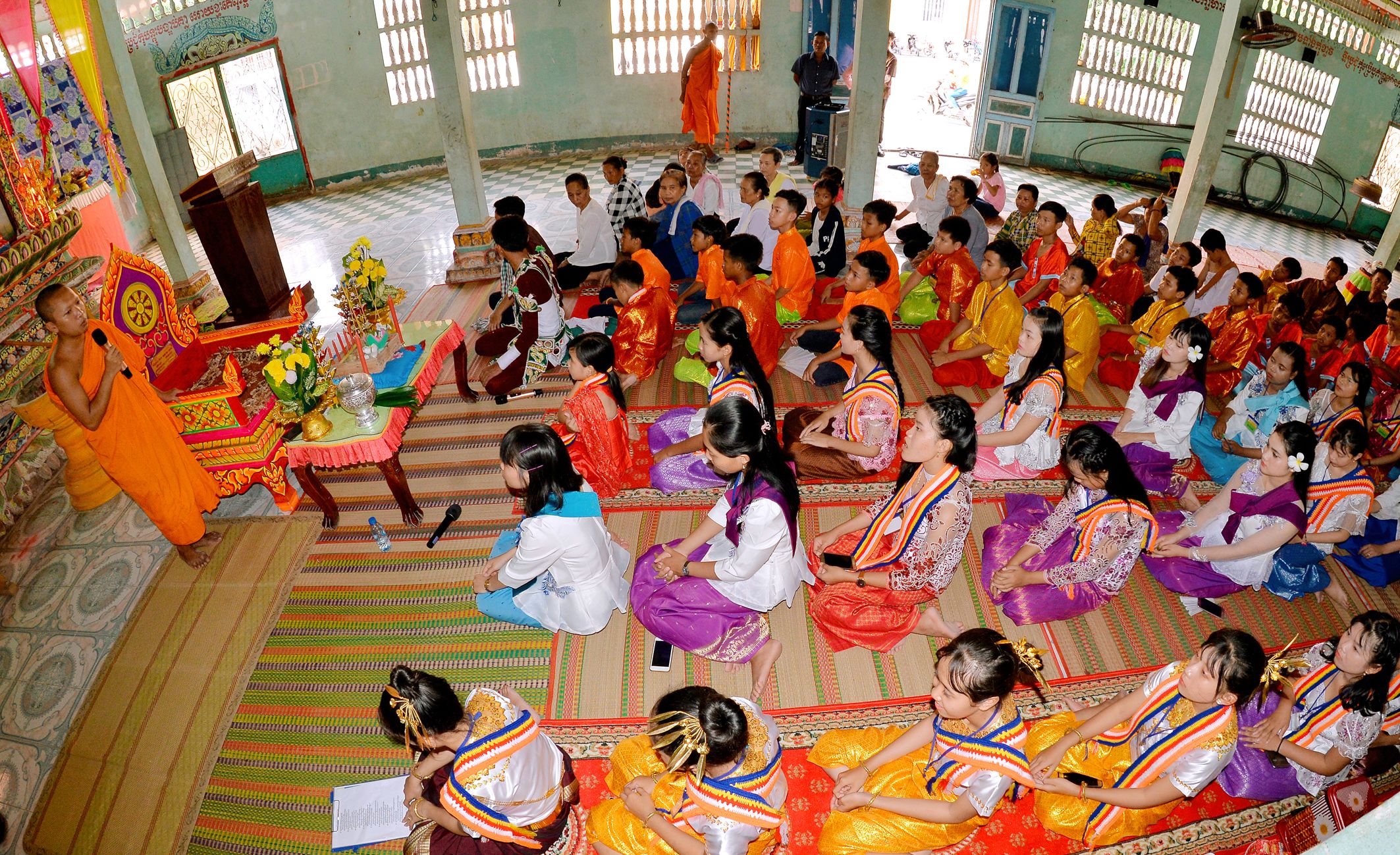 Đến đêm những người Phật tử lớn tuổi vân tập trong ngôi giảng đường hoặc chánh điện nghe Chư tăng thuyết pháp, còn lớp thanh niên nam nữ trẻ tuổi thì ra sân chùa tổ chức các trờ chơi dân gian và xem văn nghệ truyền thống như múa Rom vong, Rô băm, Dù kê...