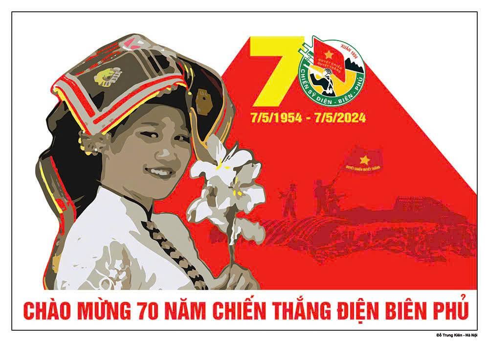 Tác phẩm cổ động “Chào mừng 70 năm Chiến thắng Điện Biên Phủ” của họa sĩ Đỗ Trung Kiên (2024).