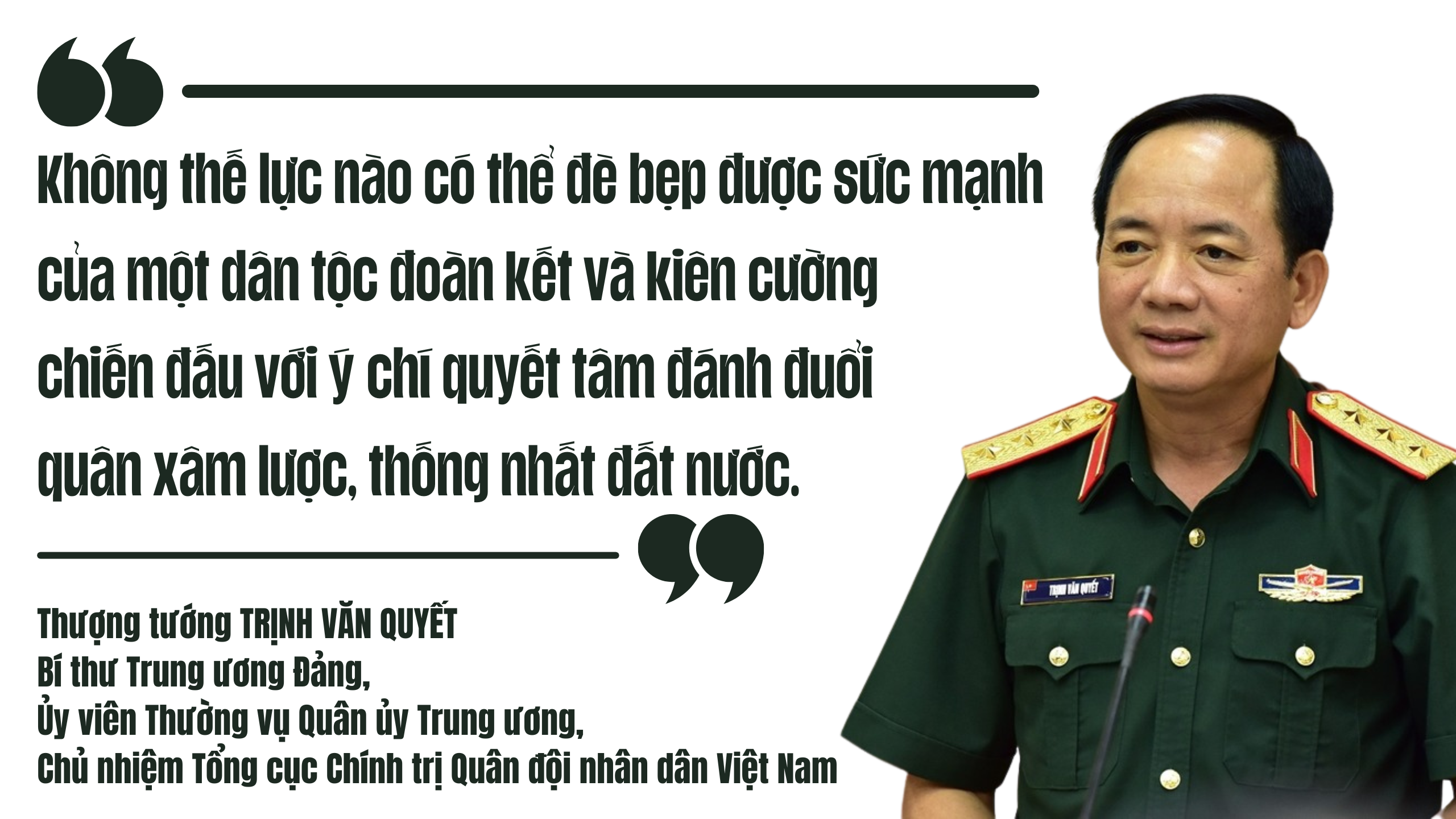Nhìn lại lịch sử hơn 4.000 năm dựng nước và giữ nước của dân tộc, trong bất cứ giai đoạn nào, trước bất kỳ các thế lực quân xâm lược nào, dù kẻ thù có cường bạo đến đâu, nhân dân ta cũng luôn nêu cao tinh thần yêu nước, đoàn kết, kiên cường chiến đấu bảo vệ “độc lập, tự do, thống nhất đất nước” - Mục tiêu cao cả, thiêng liêng, bất khả xâm phạm lẽ sống cao đẹp của quân và dân ta.