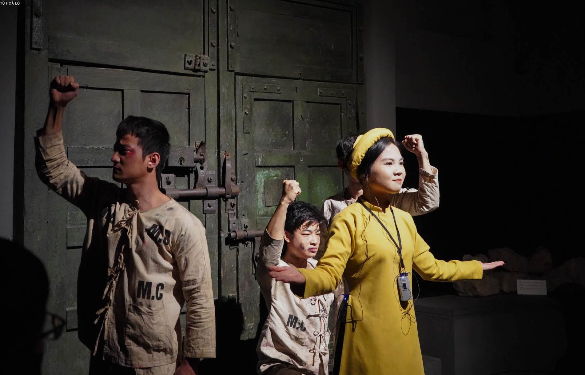 Những hoạt cảnh trong tour đêm tại tích Nhà tù Hoả Lò tạo sức hấp dẫn mới cho di tích.