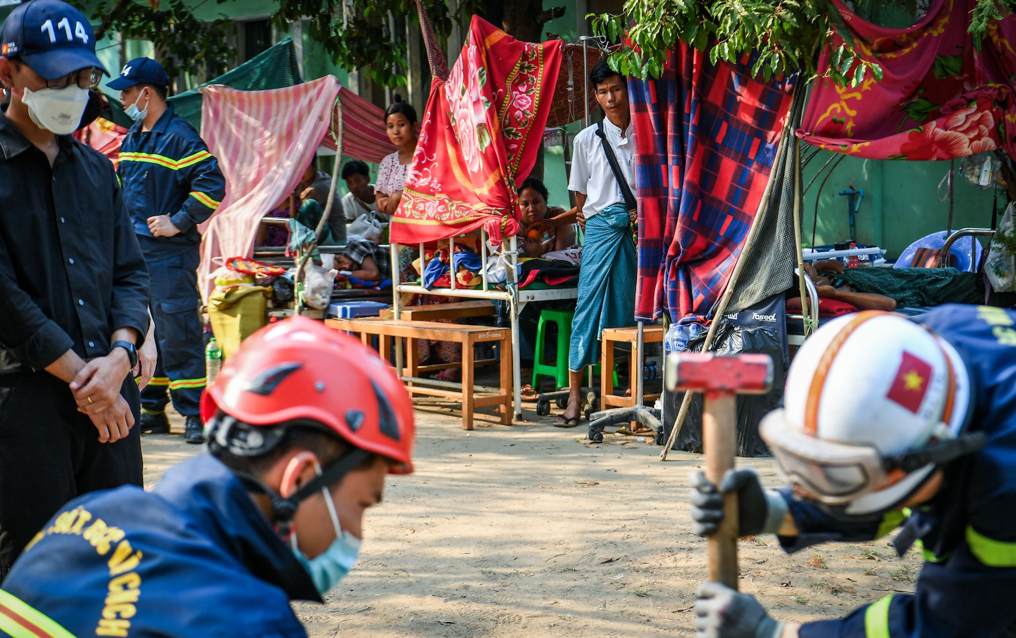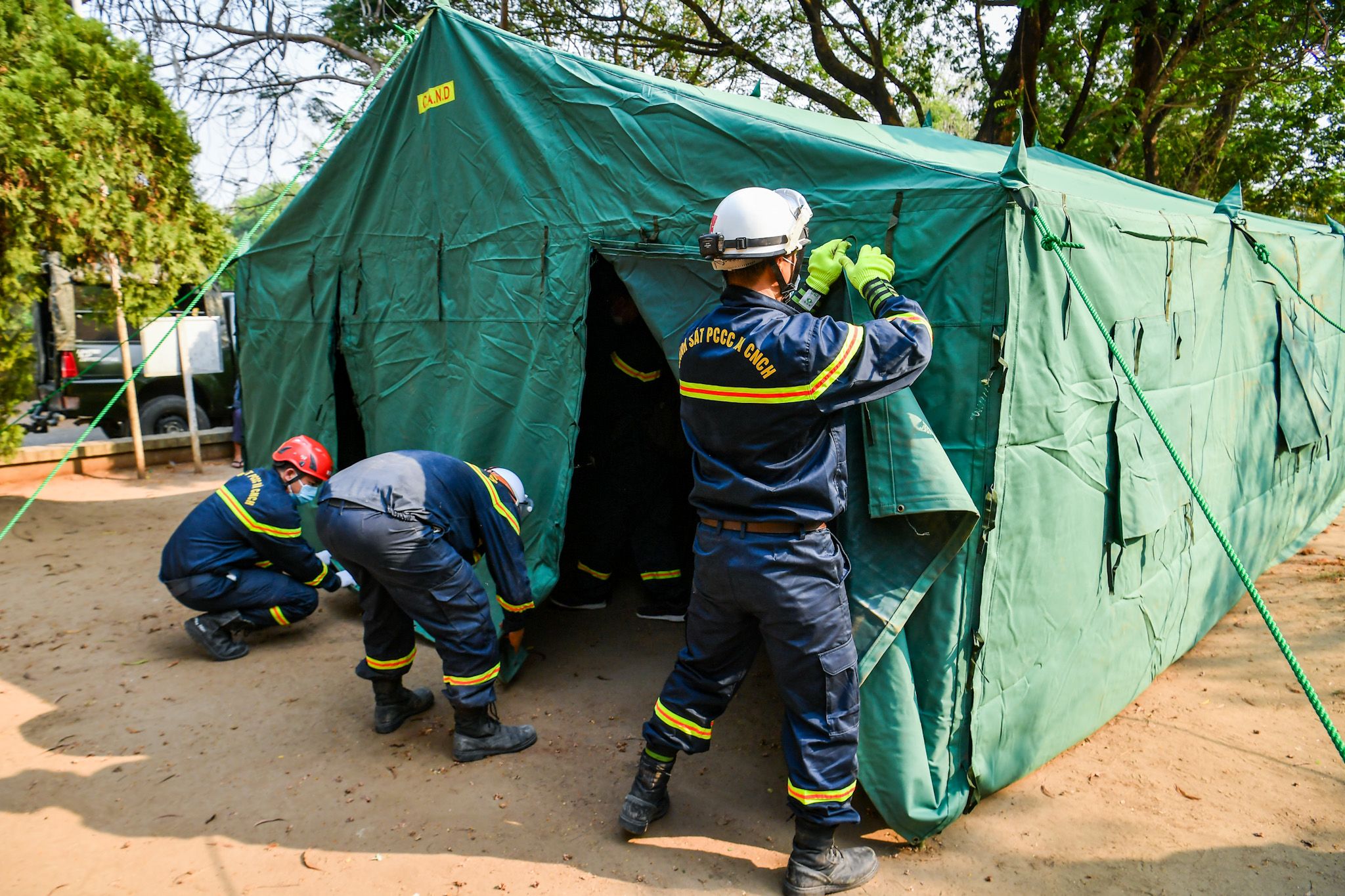 L’équipe de secours du ministère vietnamien de la Sécurité publique a installé des tentes médicales de campagne pour accueillir les patients à l’hôpital général de 1 000 lits de Naypyidaw.