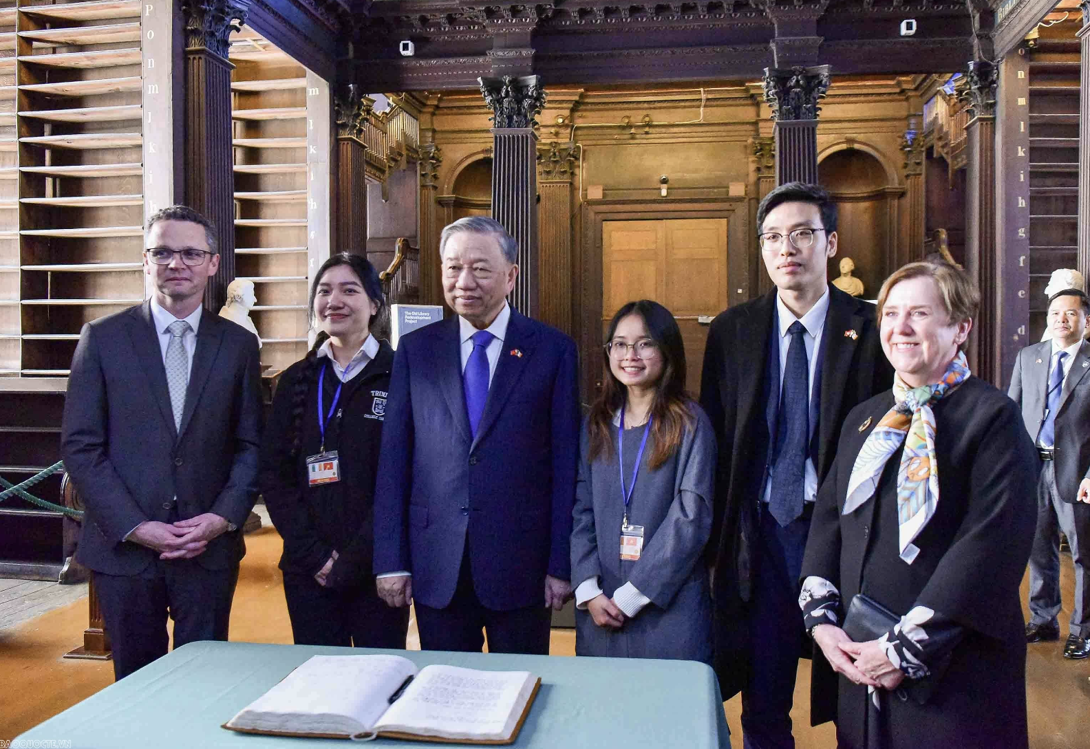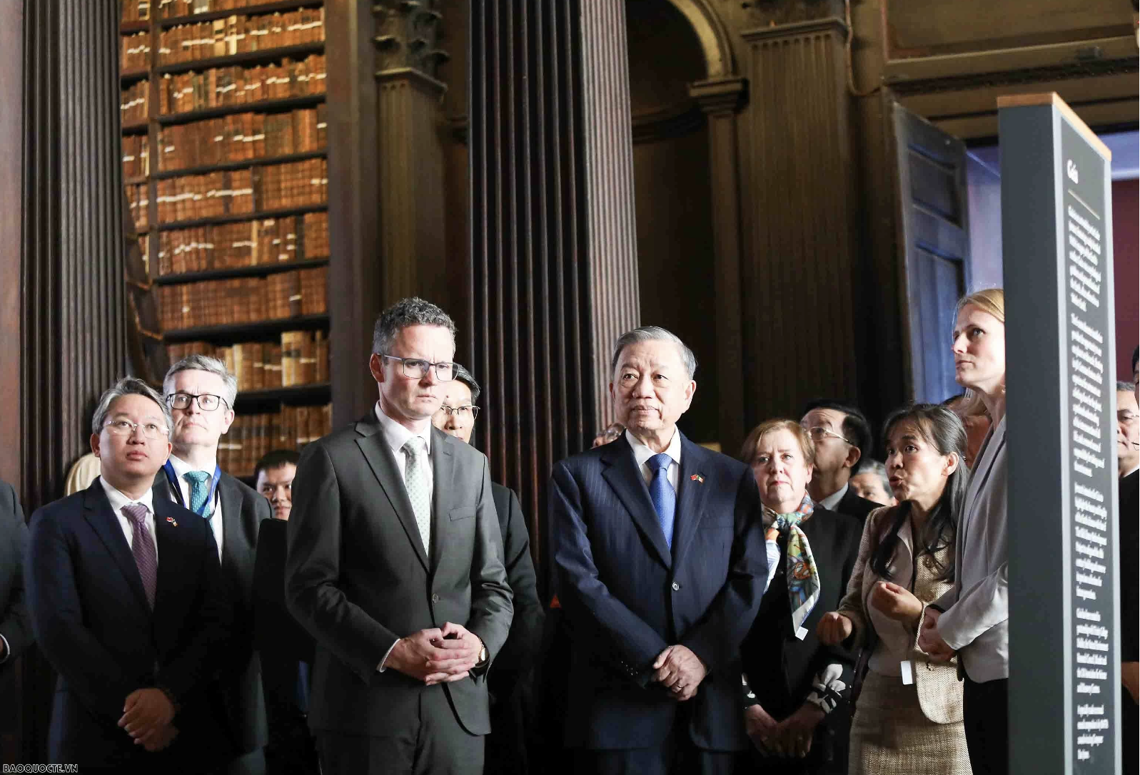 Đáp lại tình cảm của Người đứng đầu Đảng, Nhà nước Việt Nam, Giám đốc Thư viện cổ Trường Đại học Trinity Dublin đã tặng cuốn sách của Thư viện cho Tổng Bí thư, Chủ tịch nước Tô Lâm.