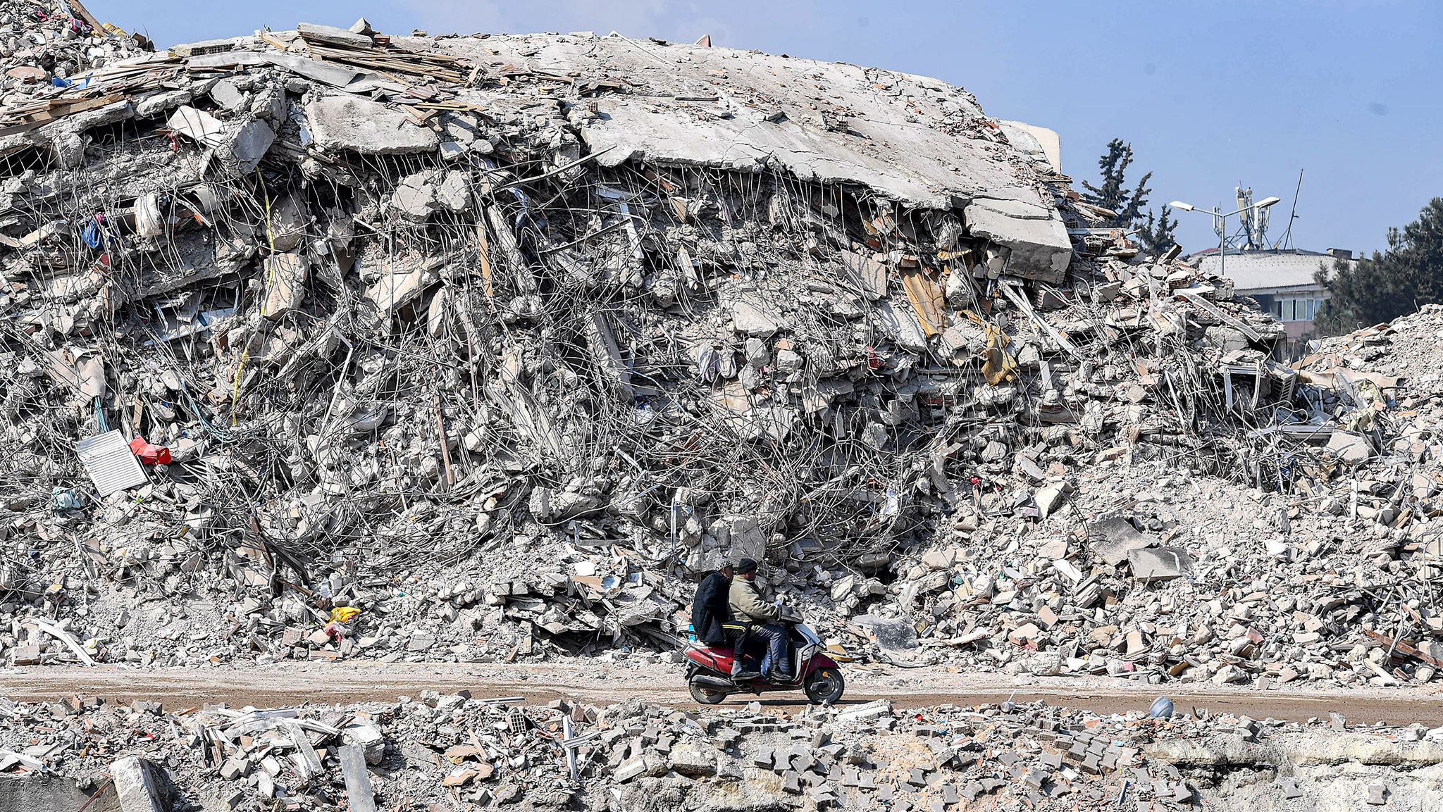 Phải hơn 8 giờ, xe chúng tôi mới tiếp cận được sát vùng tâm chấn. Thành phố cổ Antakya đón đoàn bằng một khung cảnh thê lương với những tòa chung cư ngã gục và hàng nghìn tấn gạch đá, sắt thép chồng chất như quả núi nhỏ. Dọc đường, xe cảnh sát, quân đội hú còi liên tục. Lực lượng Gìn giữ hòa bình Liên hợp quốc có mặt khắp mọi nơi. Nhưng lòng Antakya thì dường như… trống rỗng.